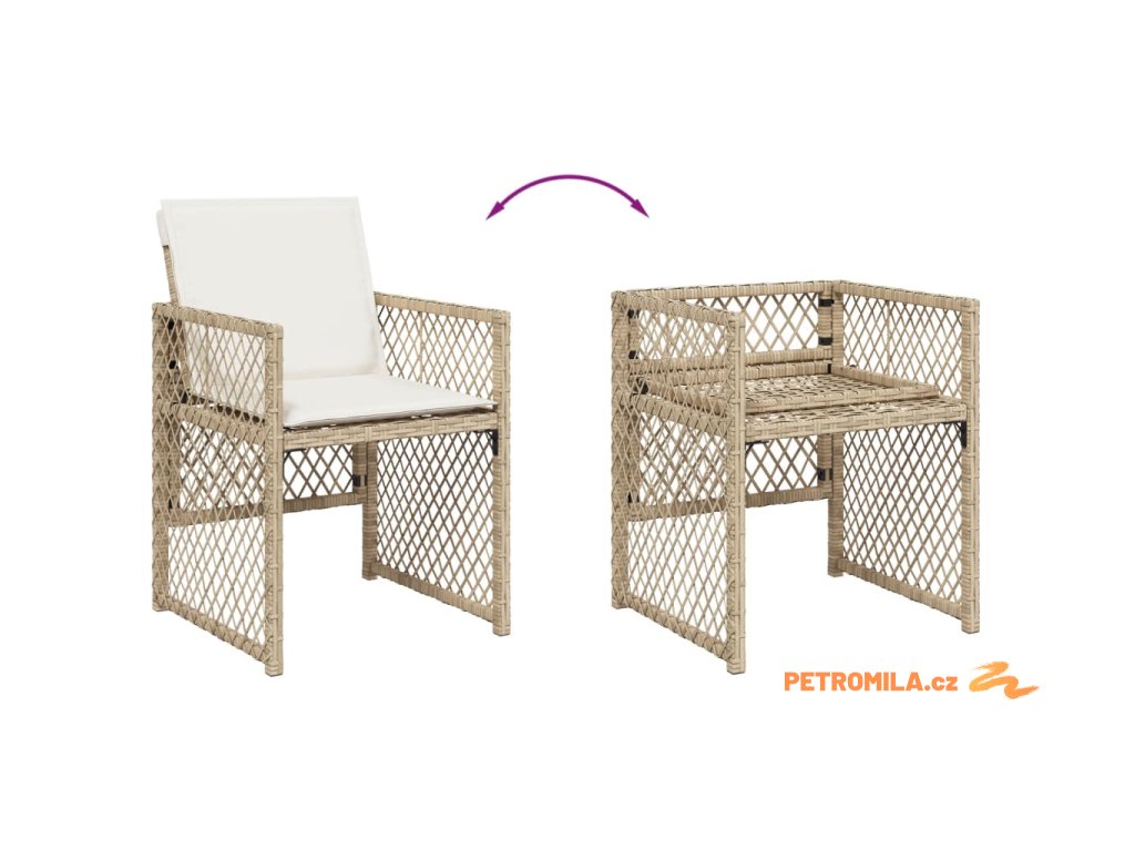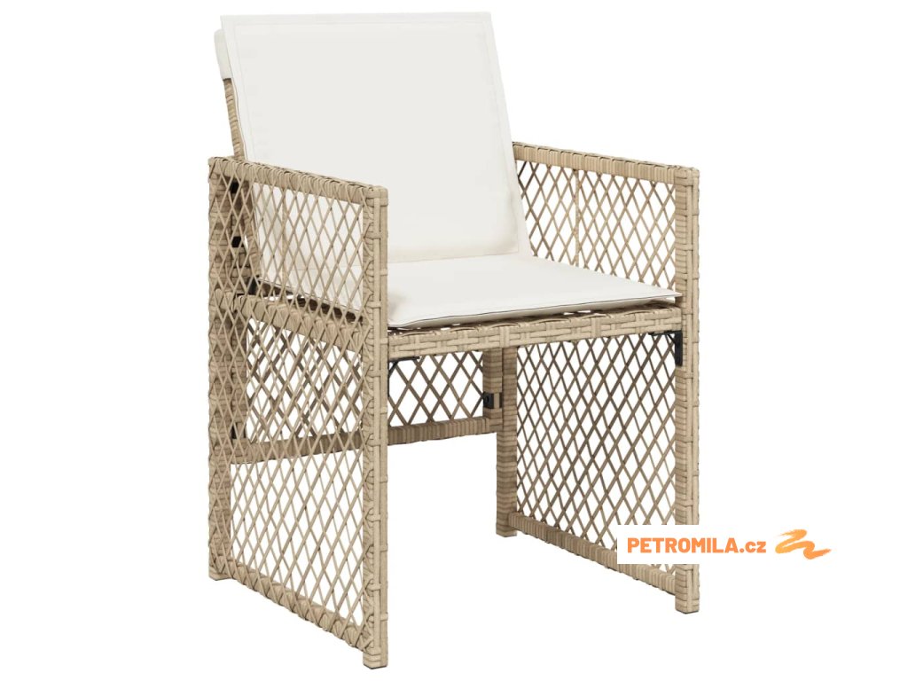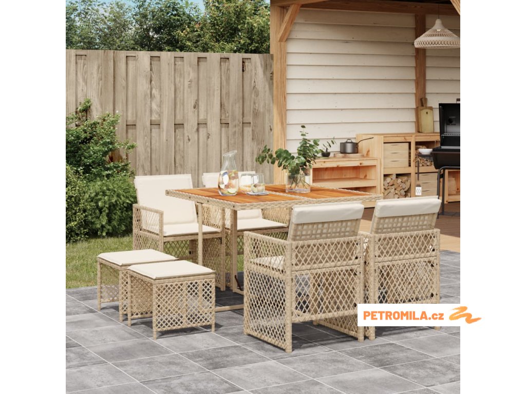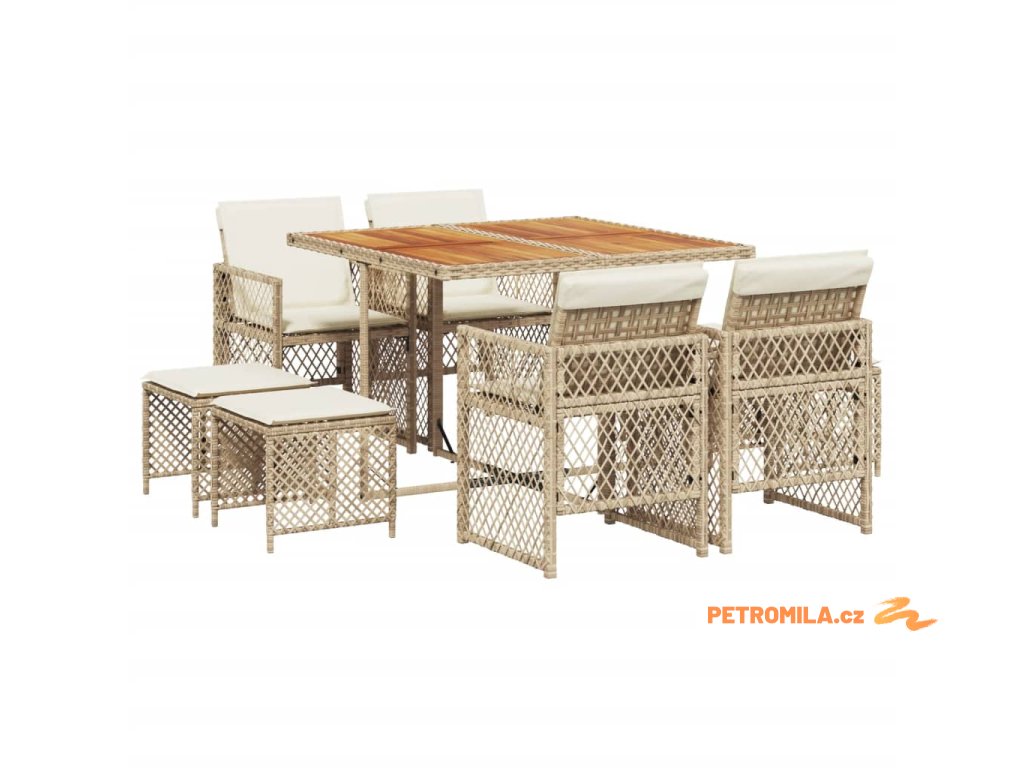 9dílný zahradní jídelní set s poduškami béžový polyratan