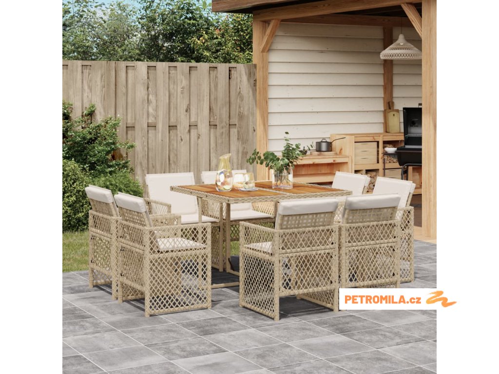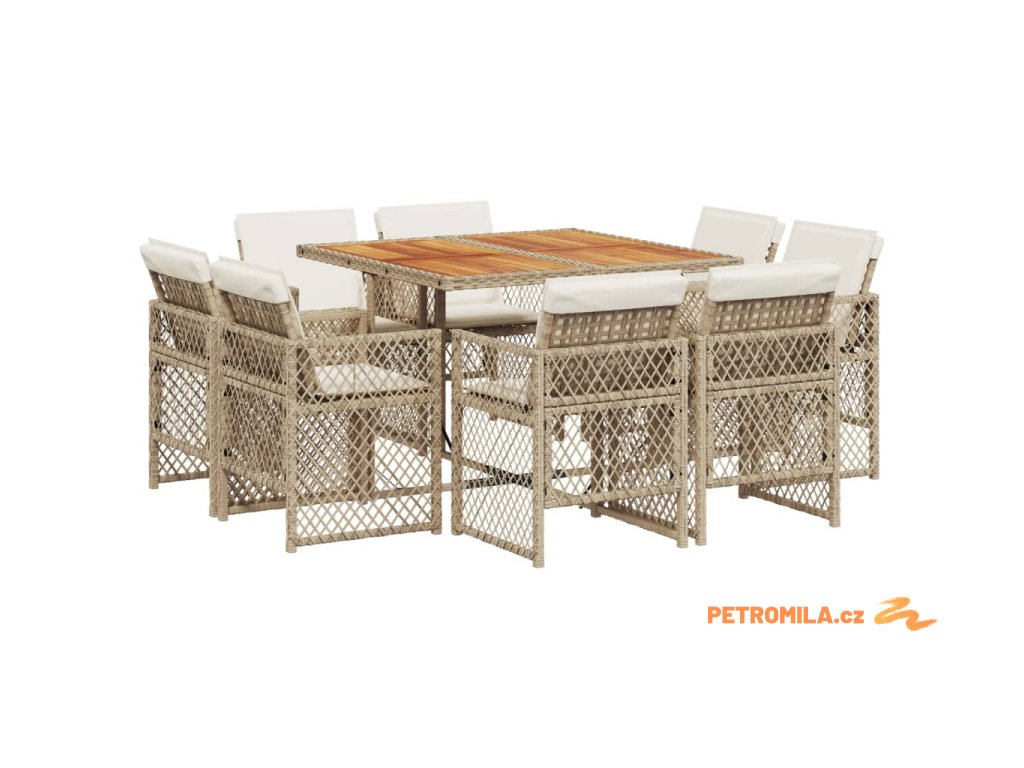 9dílný zahradní jídelní set s poduškami béžový polyratan