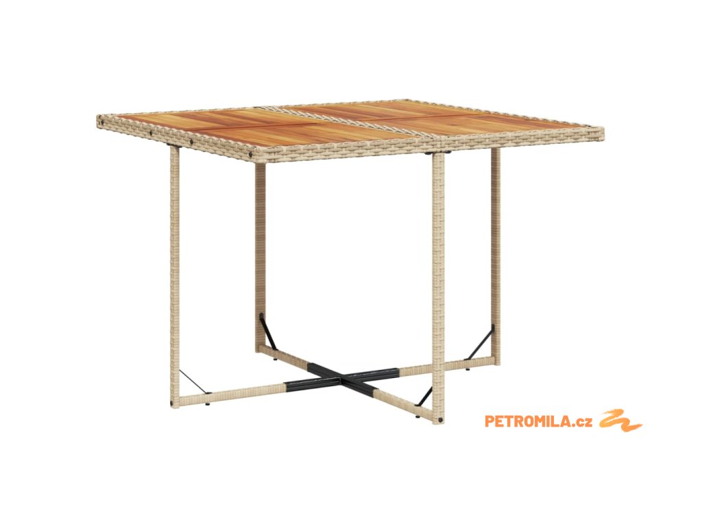 - Stabilní a snadno čistitelná stolní deska: Tento zahradní stolek má desku z akáciového dřeva, která je stabilní, odolná a snadno se čistí vlhkým hadříkem.