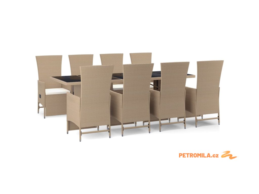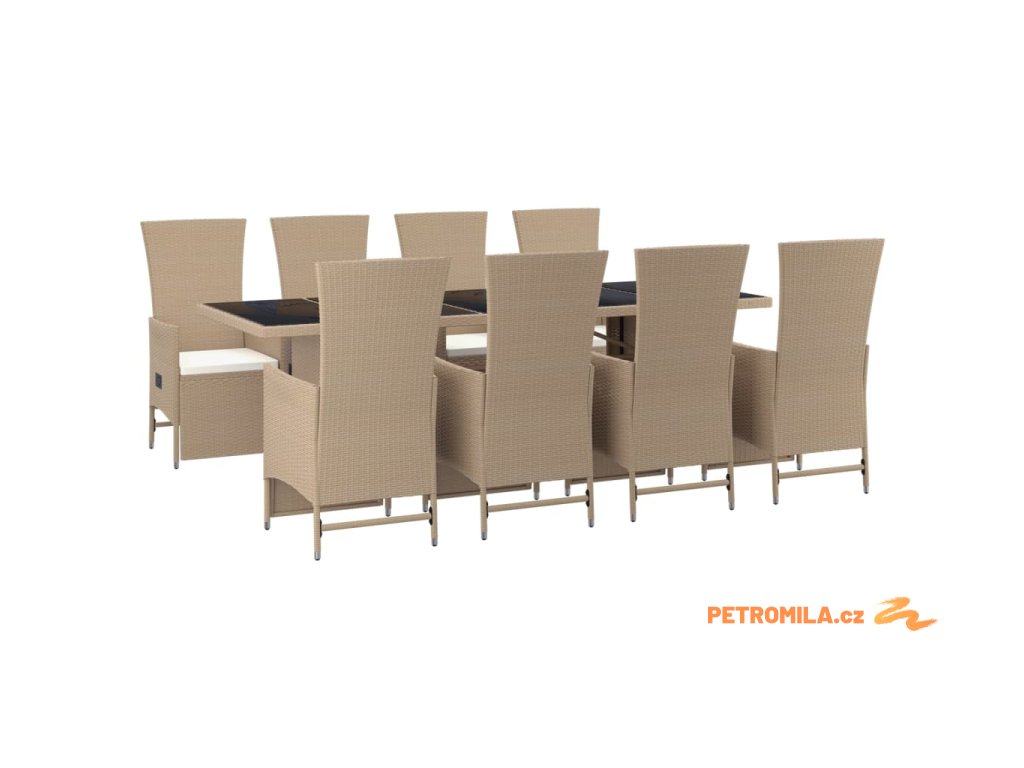 9dílný zahradní jídelní set s poduškami béžový polyratan