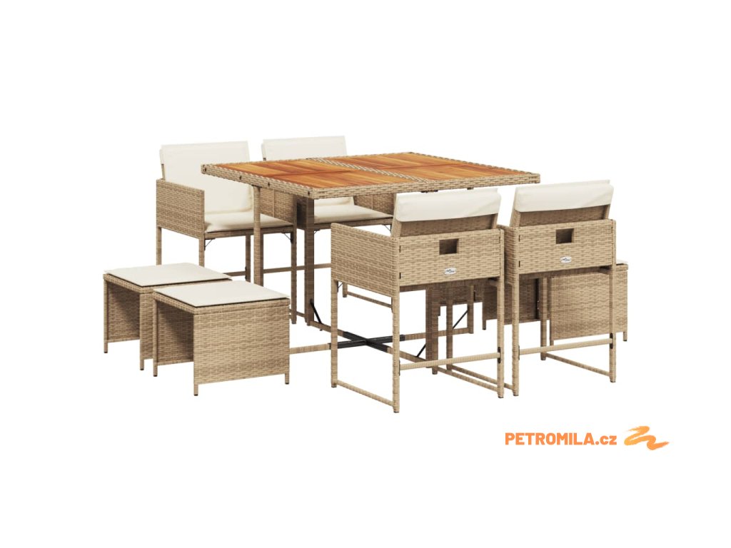 9dílný zahradní jídelní set s poduškami béžový polyratan