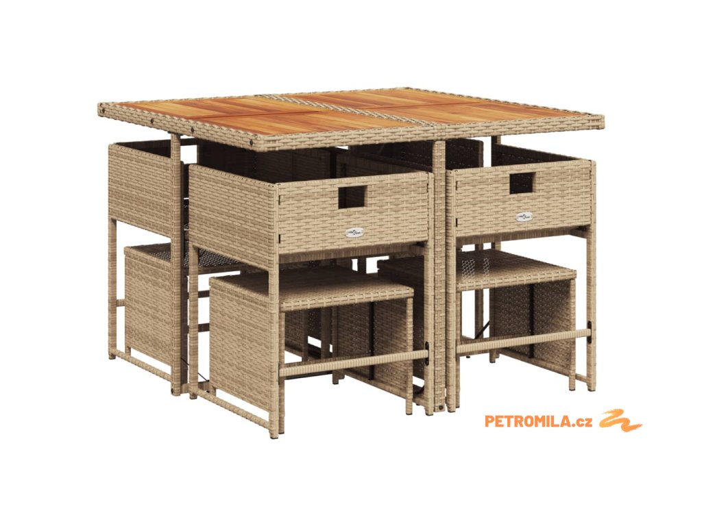 - Materiál: PE ratan, práškově lakovaná ocel, masivní akáciové dřevo