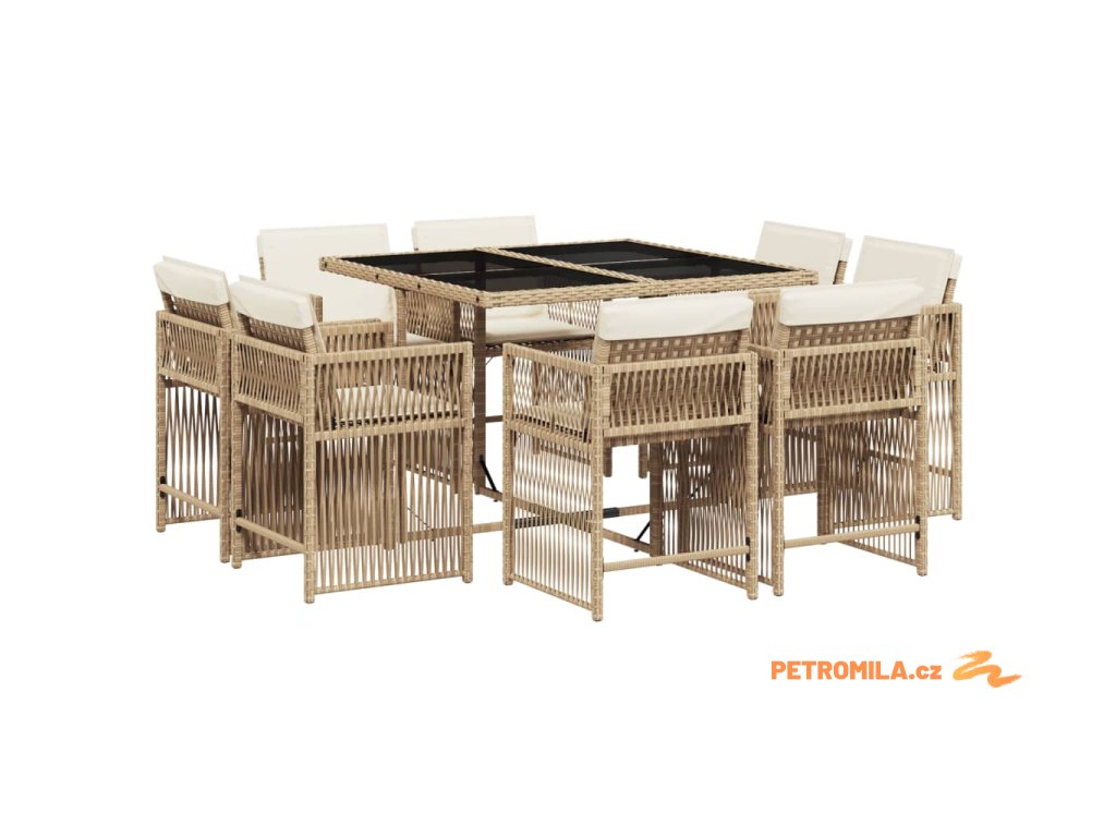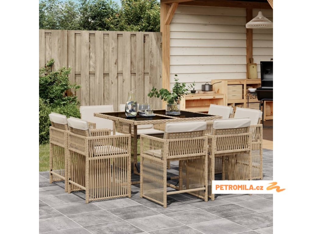 9dílný zahradní jídelní set s poduškami béžový polyratan