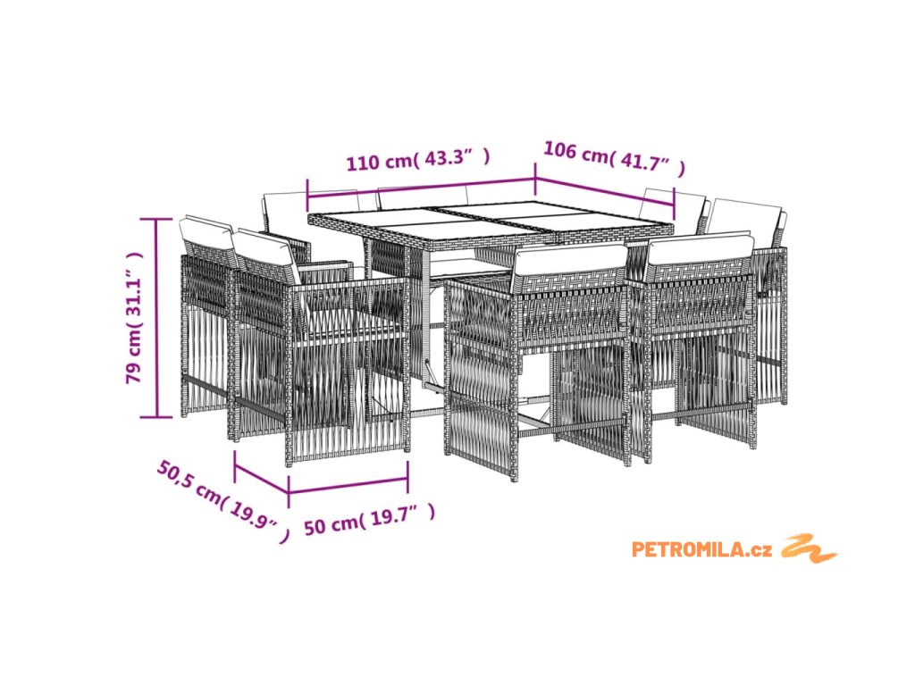 - Rozměry: 110 x 106 x 73 cm (D x Š x V)