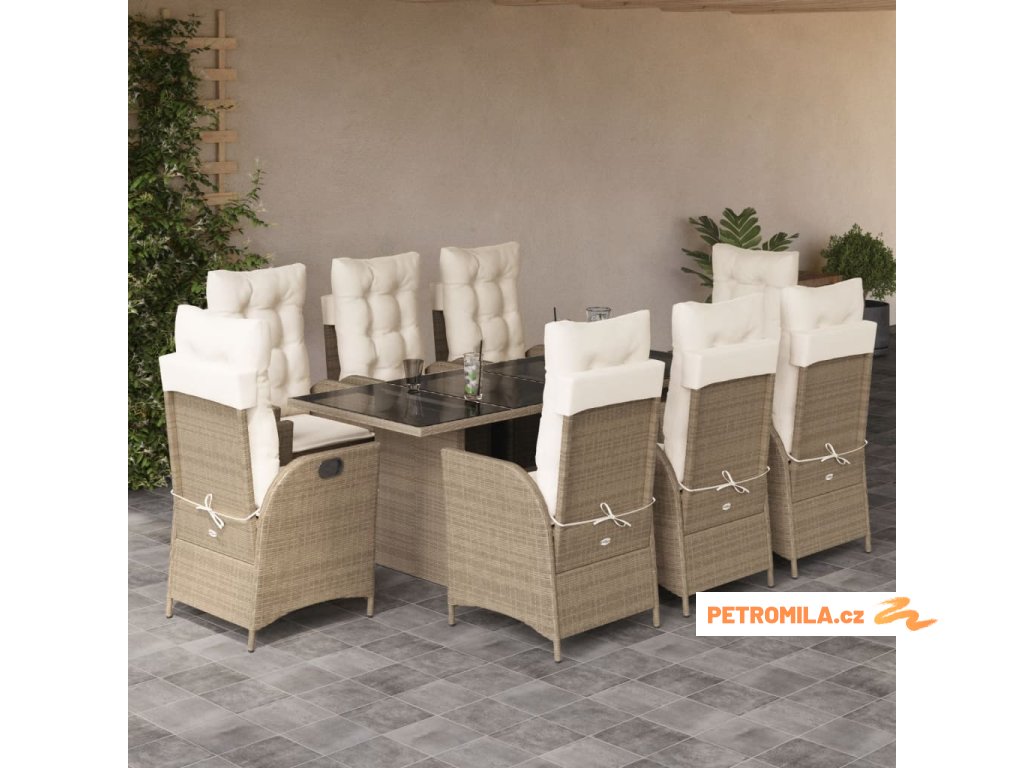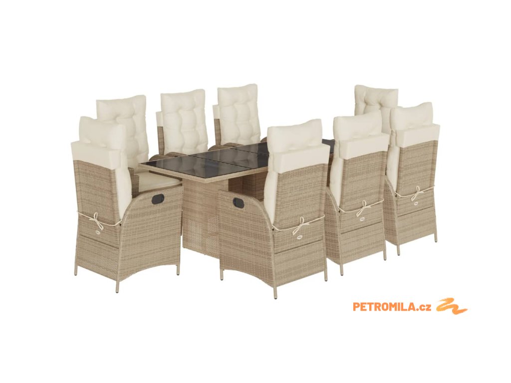 9dílný zahradní jídelní set s poduškami béžový polyratan