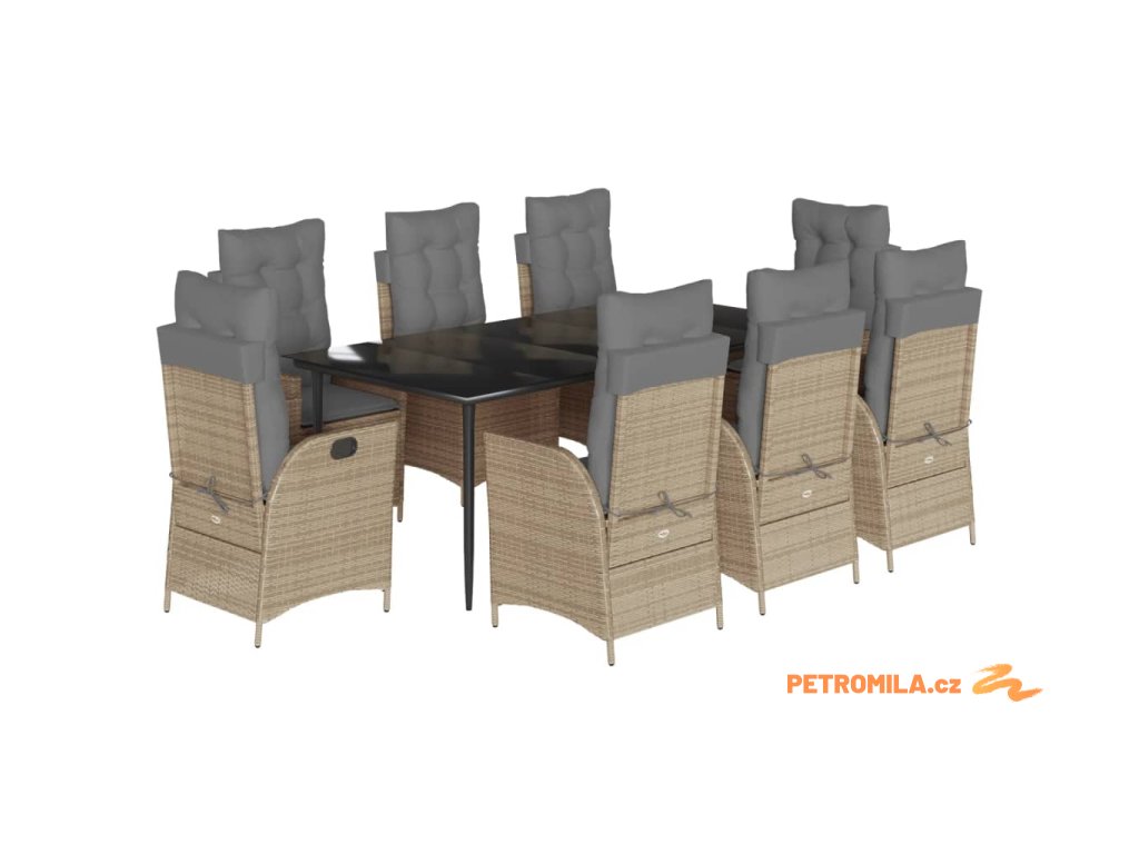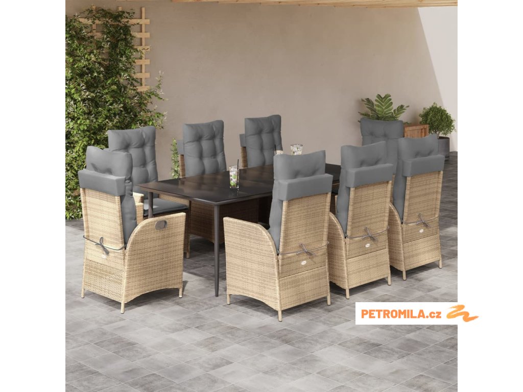 9dílný zahradní jídelní set s poduškami béžový polyratan