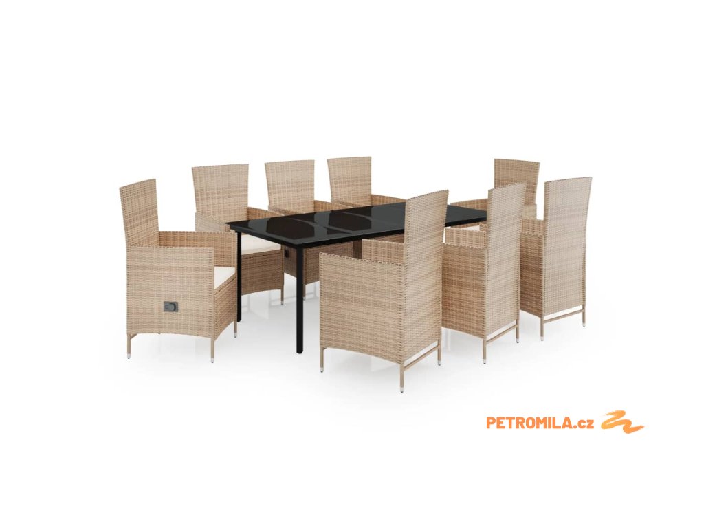 Stůl i židle mají rámy z práškově lakované oceli, jsou tedy robustní, stabilní a vhodné pro každodenní venkovní použití. Židle jsou vyrobené z voděodolného PE ratanu, takže se snadno čistí a hodně toho vydrží. Opěradlo si můžete nastavit stisknutím tlačítka na boku. Nábytek má lehkou konstrukci, lze ho tudíž bez námahy přesouvat. Husté polstrované podušky na sedák vám navíc zajistí mimořádné pohodlí. Jejich polyesterové potahy jsou nenáročné na údržbu a dají se stáhnout a vyprat. Hladká skleněná stolní deska, kterou jednoduše očistíte vlhkým hadříkem, je ideální k podávání jídla a pití nebo k vystavení různých dekorativních předmětů.