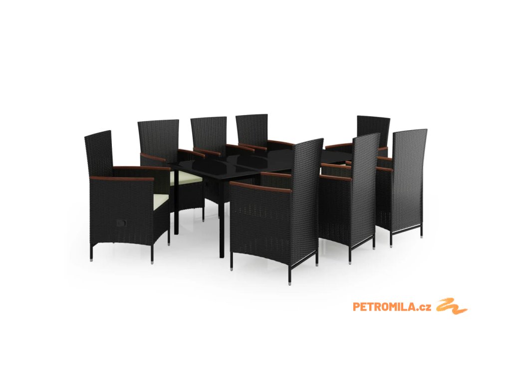 - Materiál: PE ratan, masivní akáciové dřevo, práškově lakovaná ocel, sklo