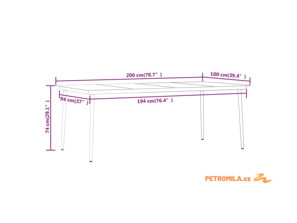 - Rozměry stolu: 200 x 100 x 74 cm (D x Š x V)