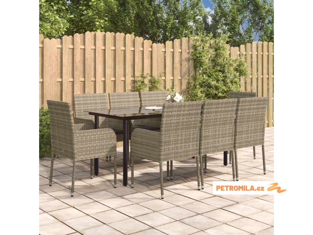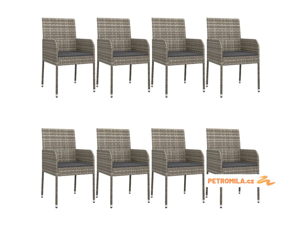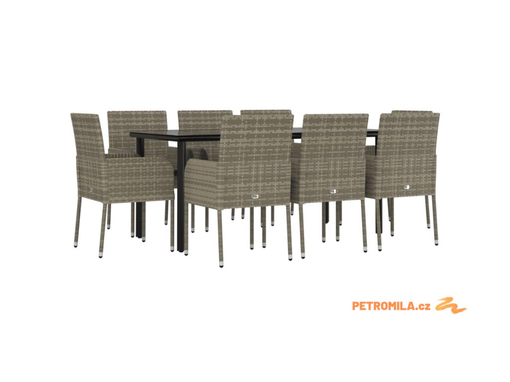 9dílný zahradní jídelní set s poduškami černý a šedý polyratan