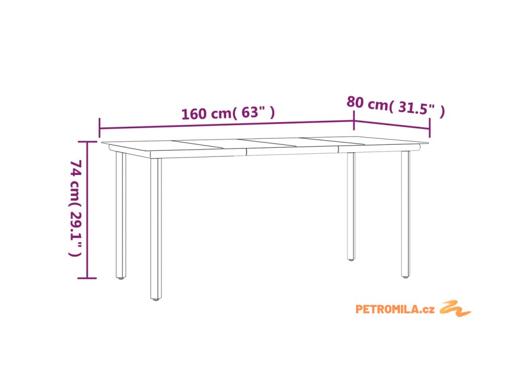 - Rozměry: 160 x 80 x 74 cm (D x Š x V)