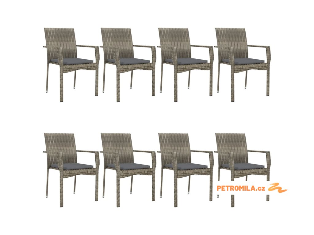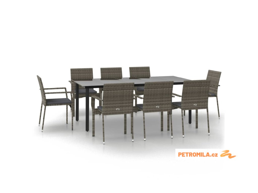 9dílný zahradní jídelní set s poduškami černý a šedý polyratan