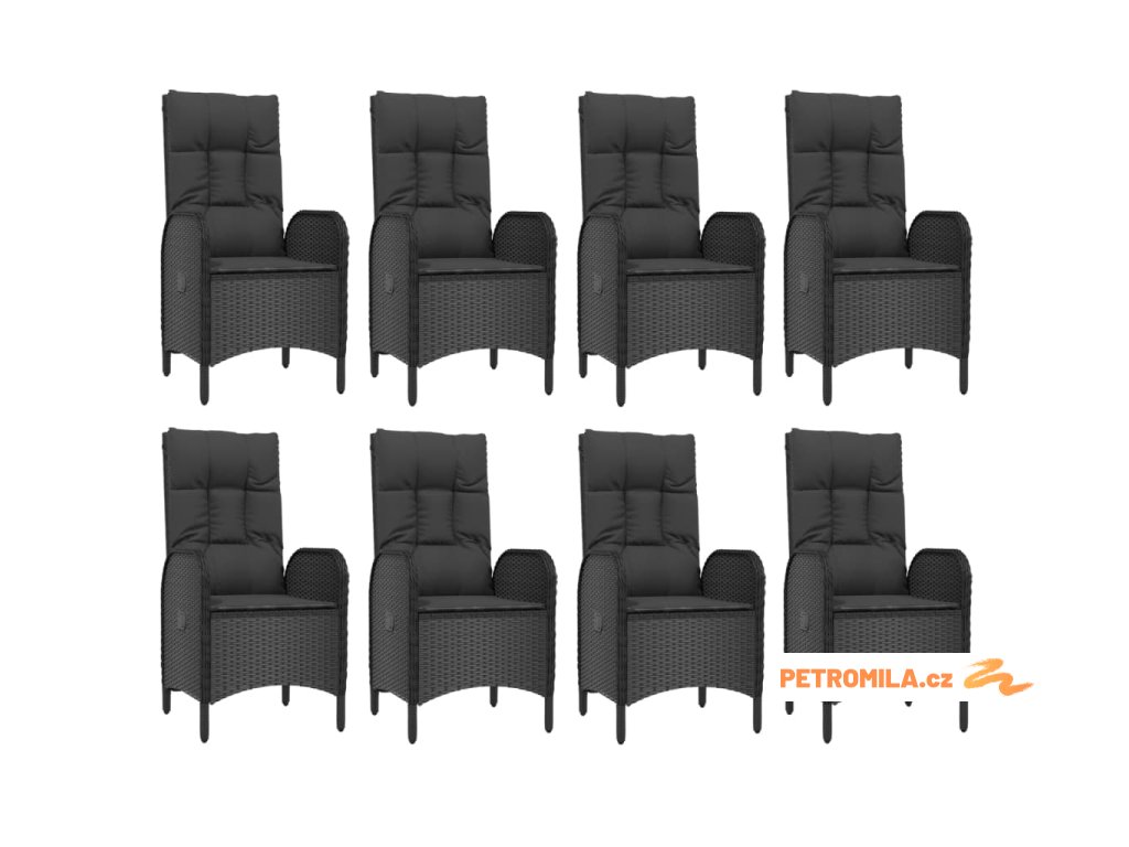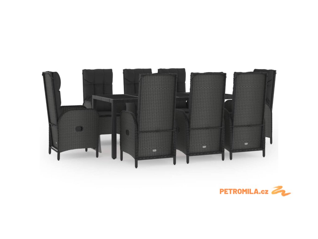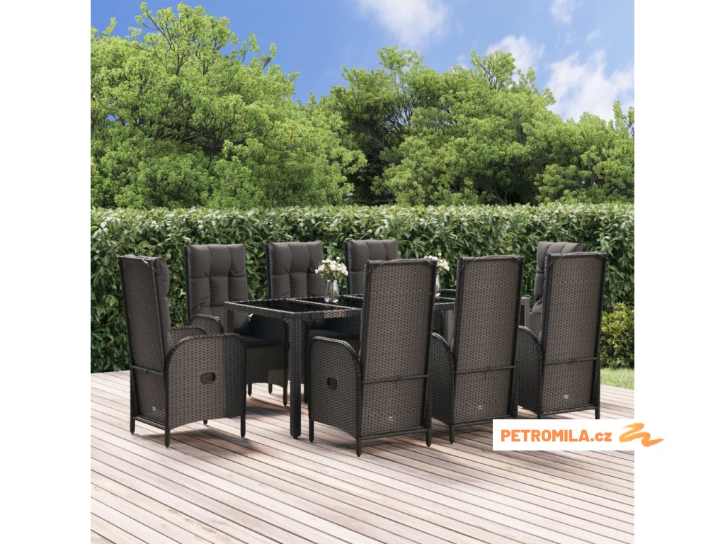 9dílný zahradní jídelní set s poduškami černý a šedý polyratan