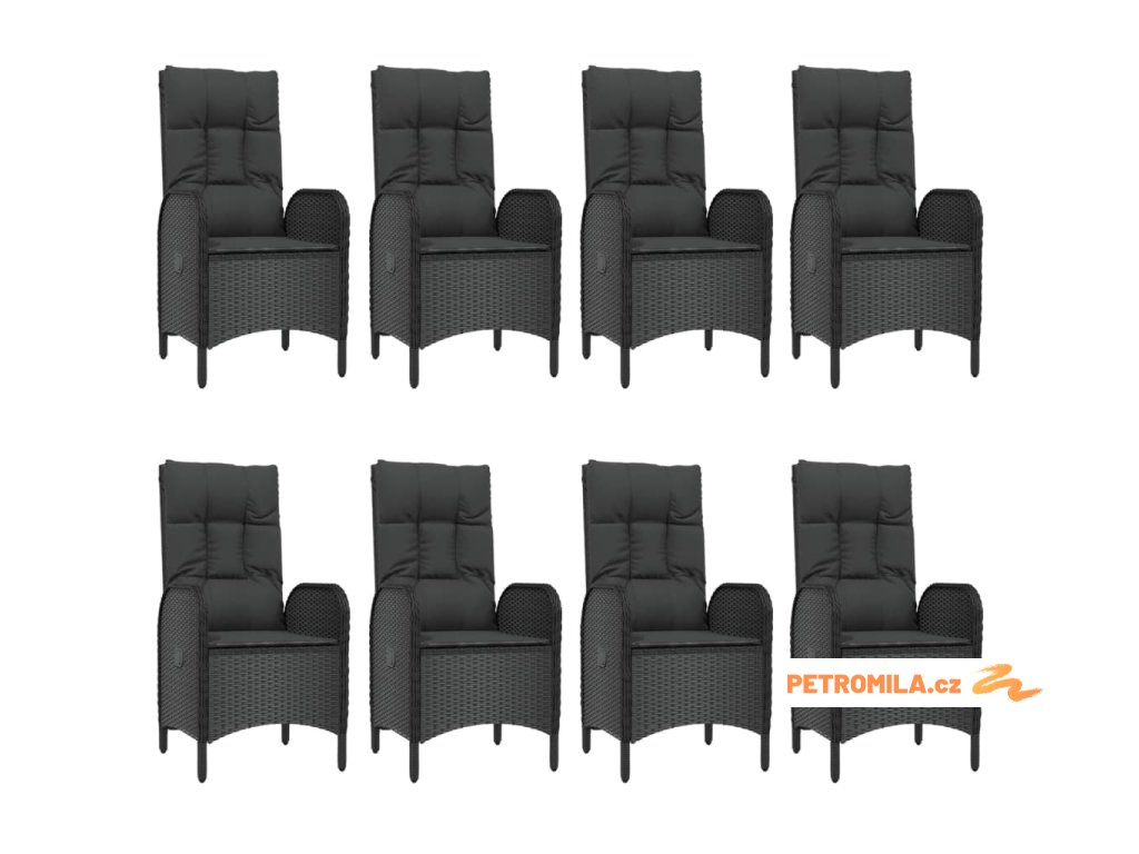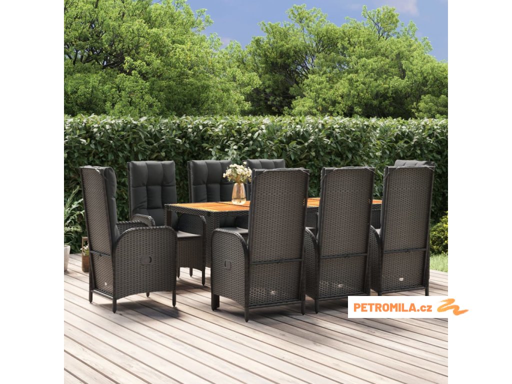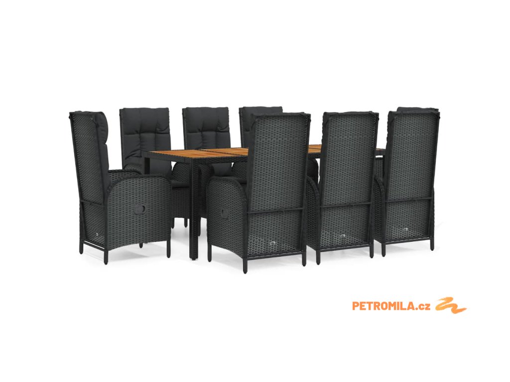 9dílný zahradní jídelní set s poduškami černý polyratan