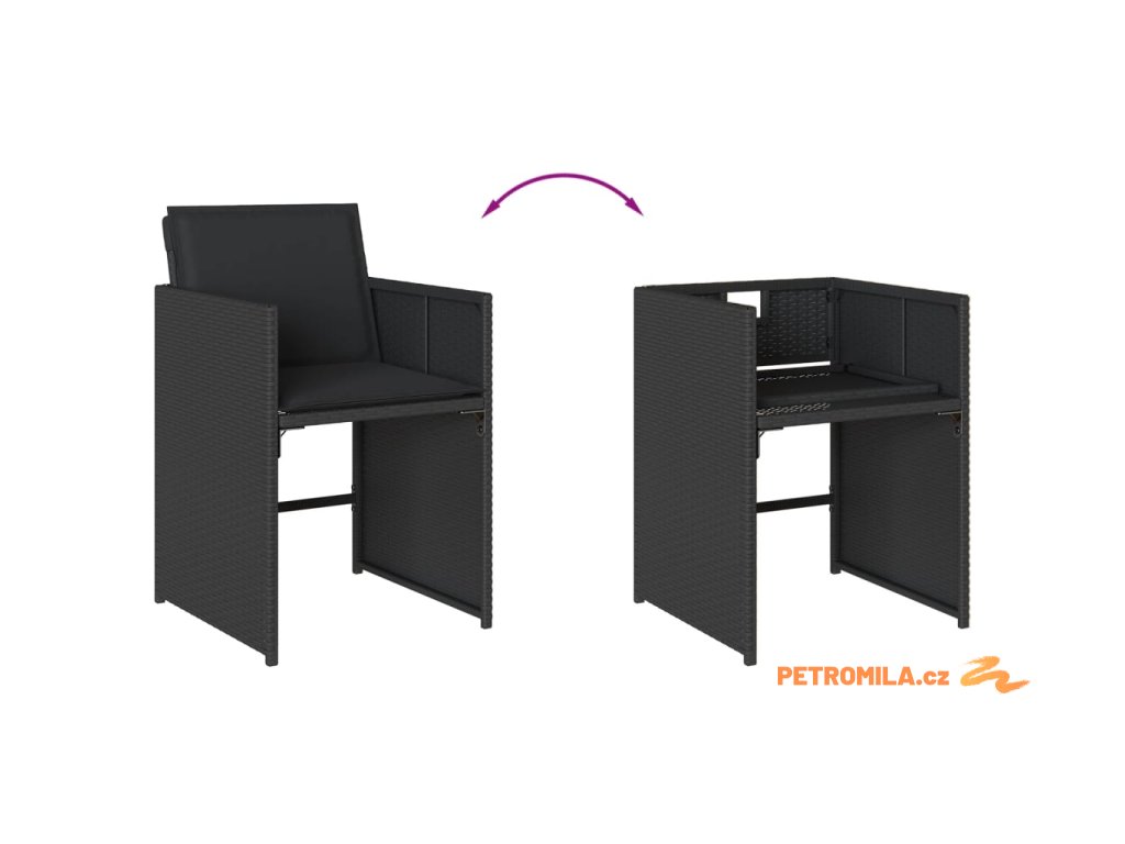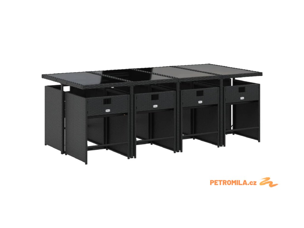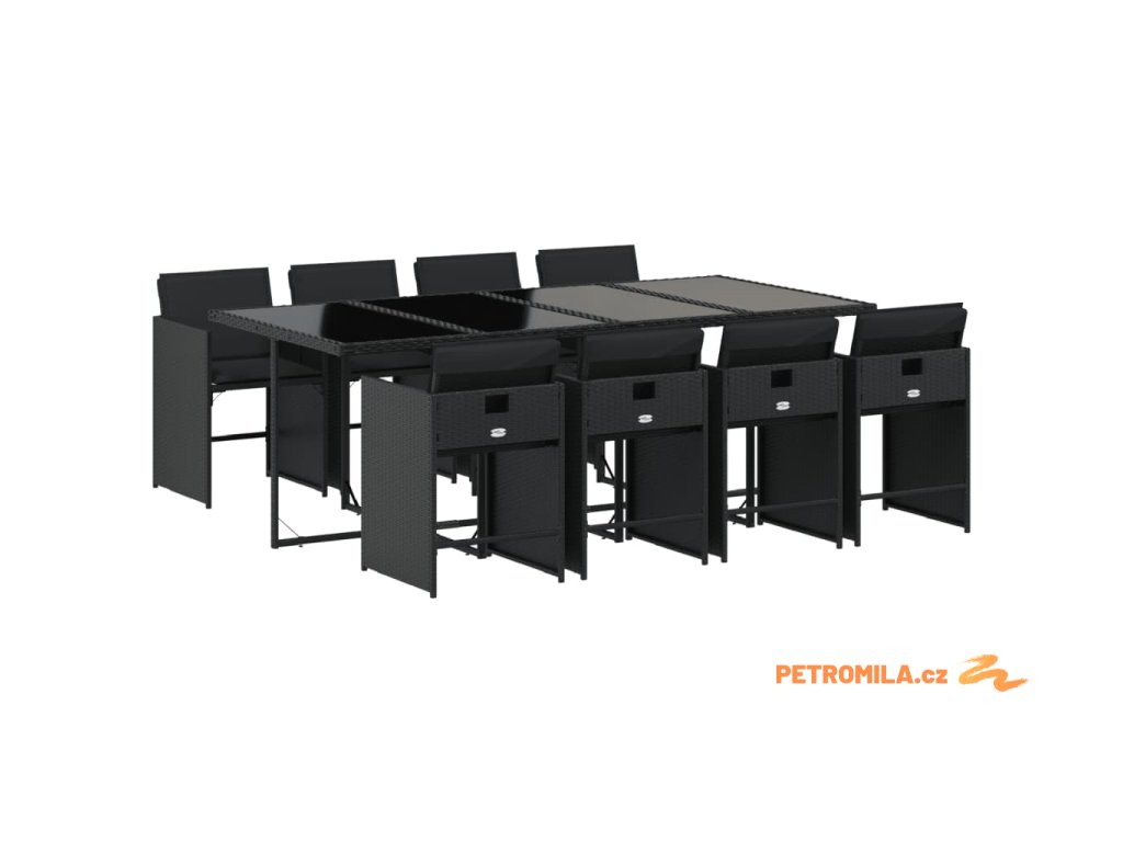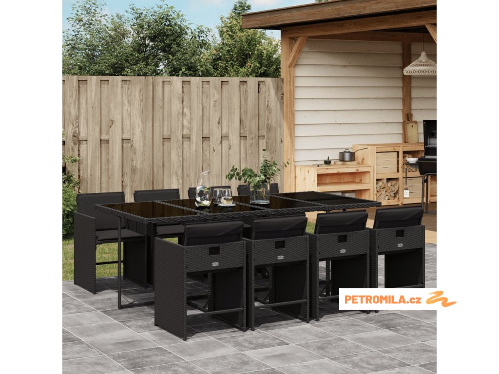 9dílný zahradní jídelní set s poduškami černý polyratan