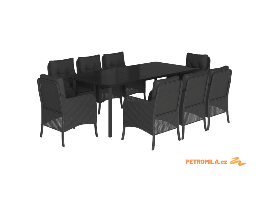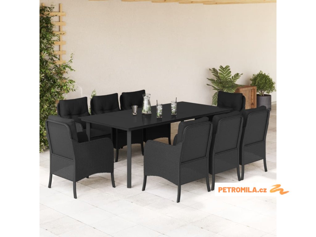 9dílný zahradní jídelní set s poduškami černý polyratan