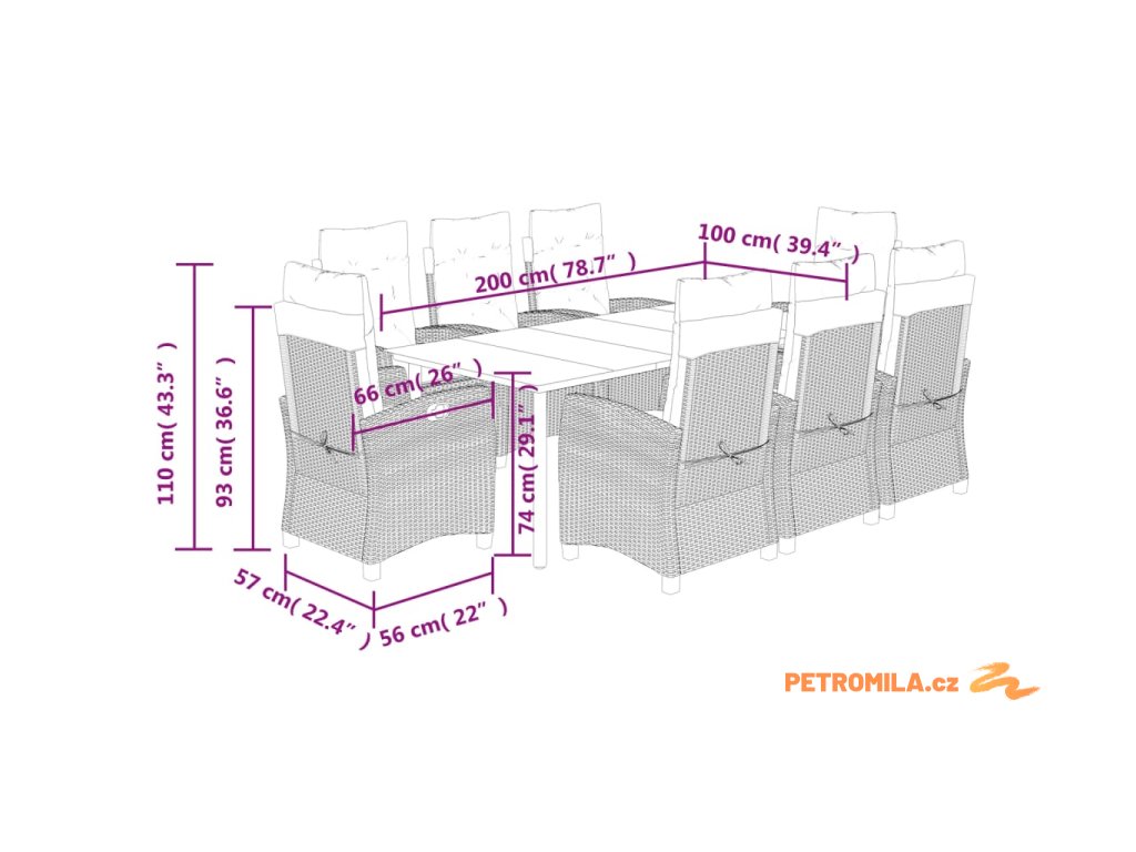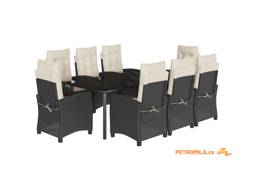 9dílný zahradní jídelní set s poduškami černý polyratan