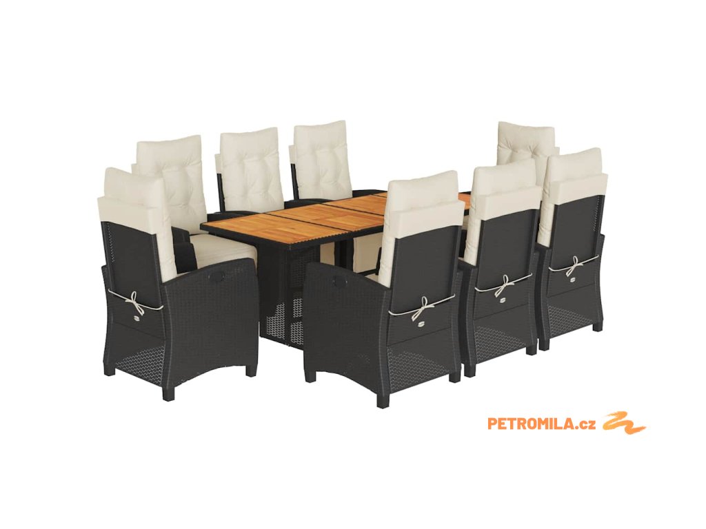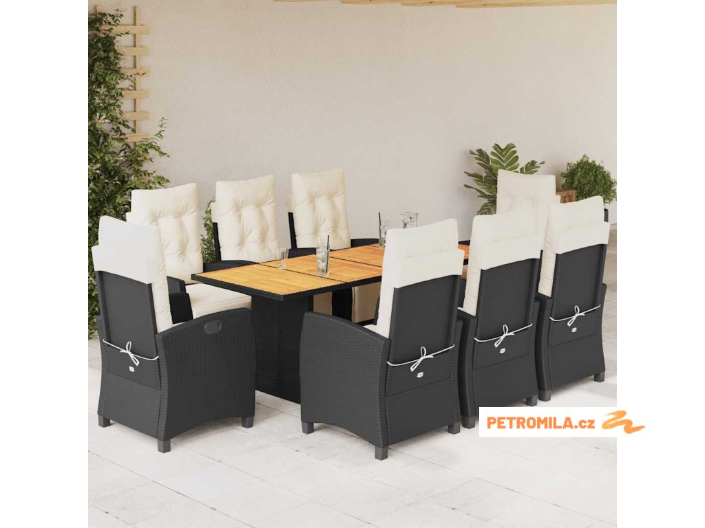 9dílný zahradní jídelní set s poduškami černý polyratan