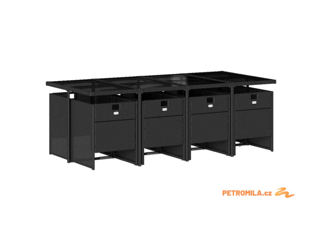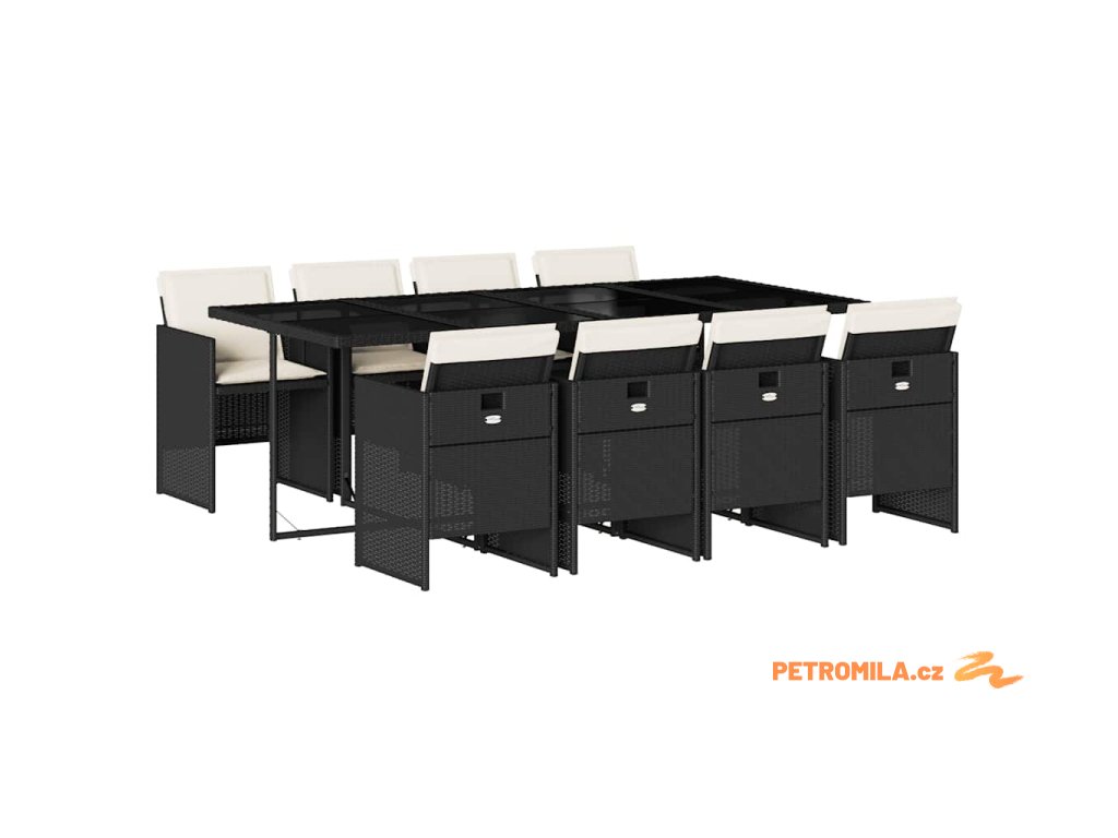 9dílný zahradní jídelní set s poduškami černý polyratan