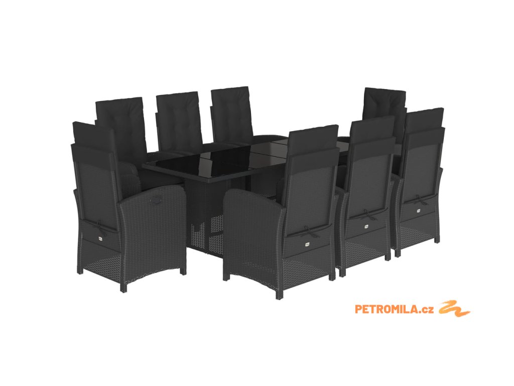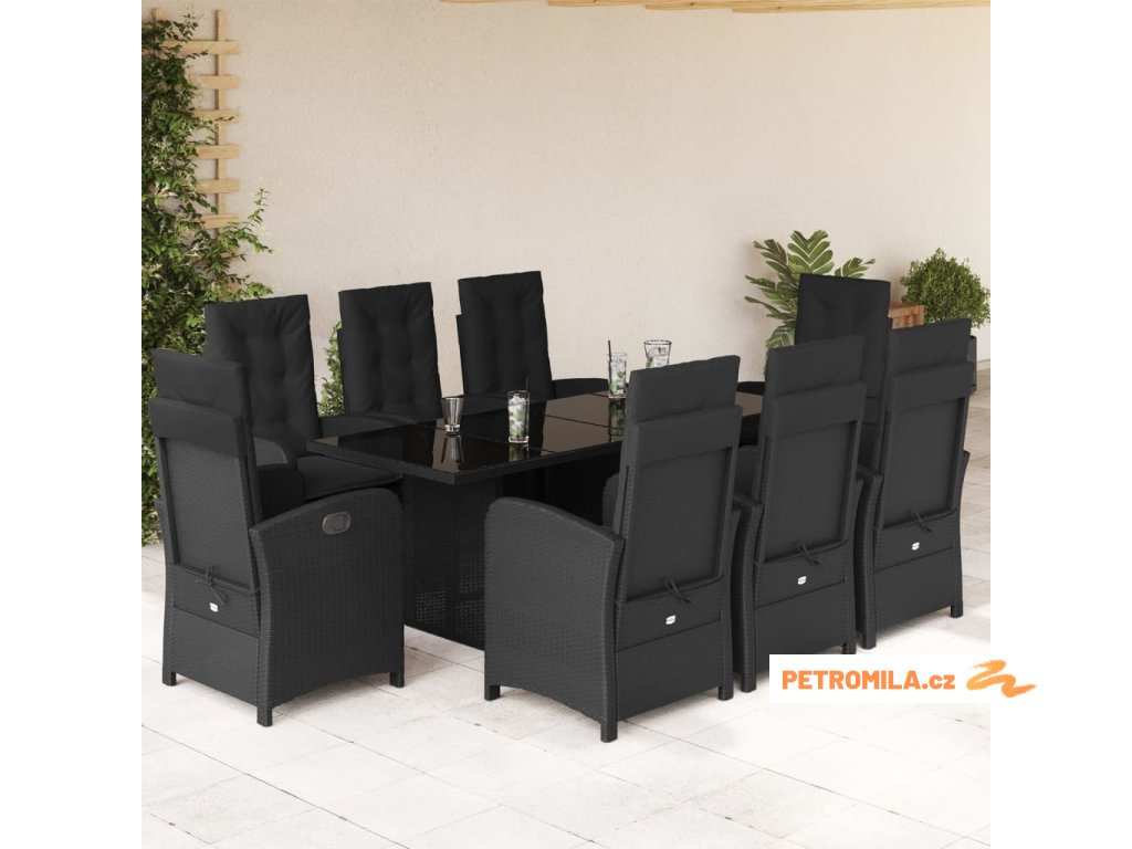9dílný zahradní jídelní set s poduškami černý polyratan