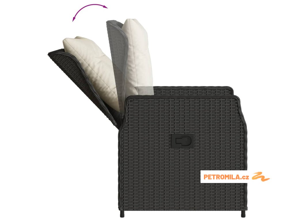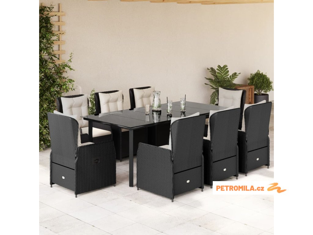 9dílný zahradní jídelní set s poduškami černý polyratan