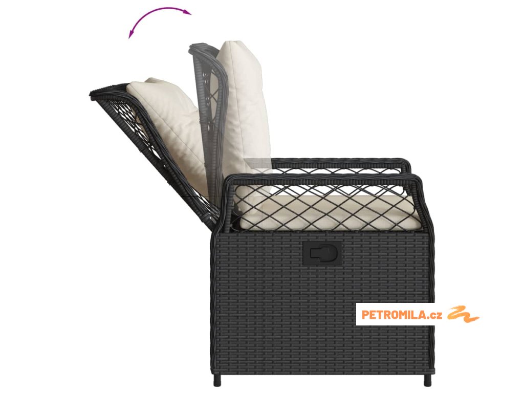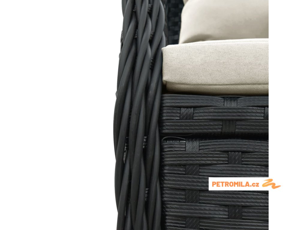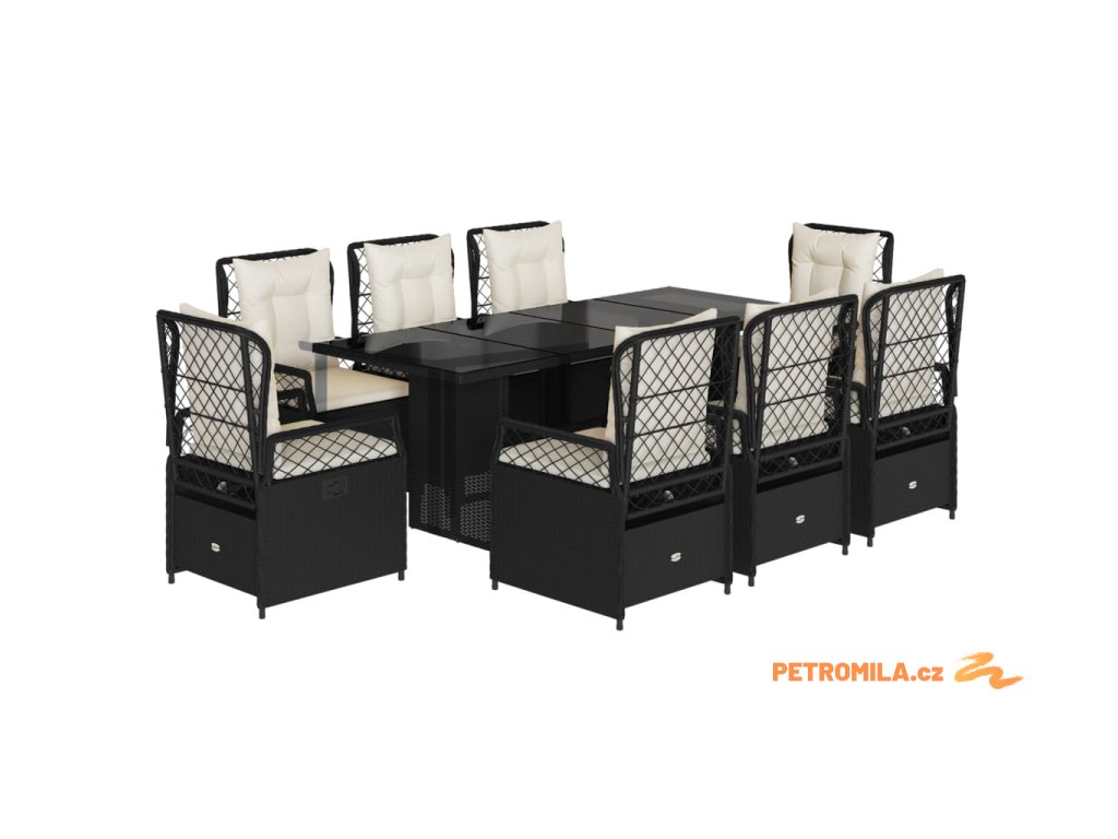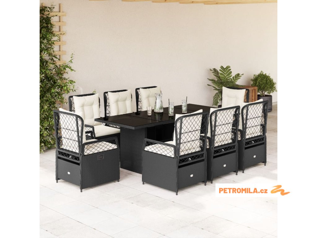 9dílný zahradní jídelní set s poduškami černý polyratan