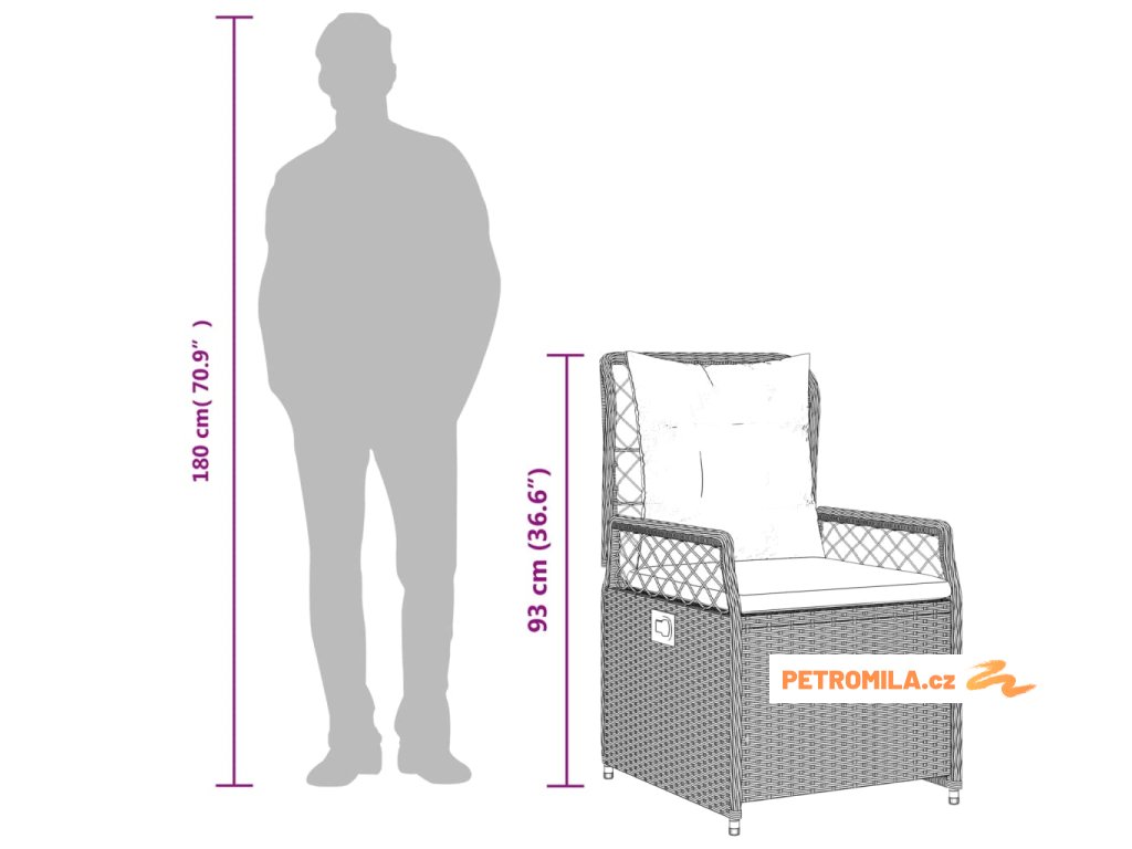- Rozměry při poloze vsedě: 55 x 60 x 93 cm (Š x H x V)