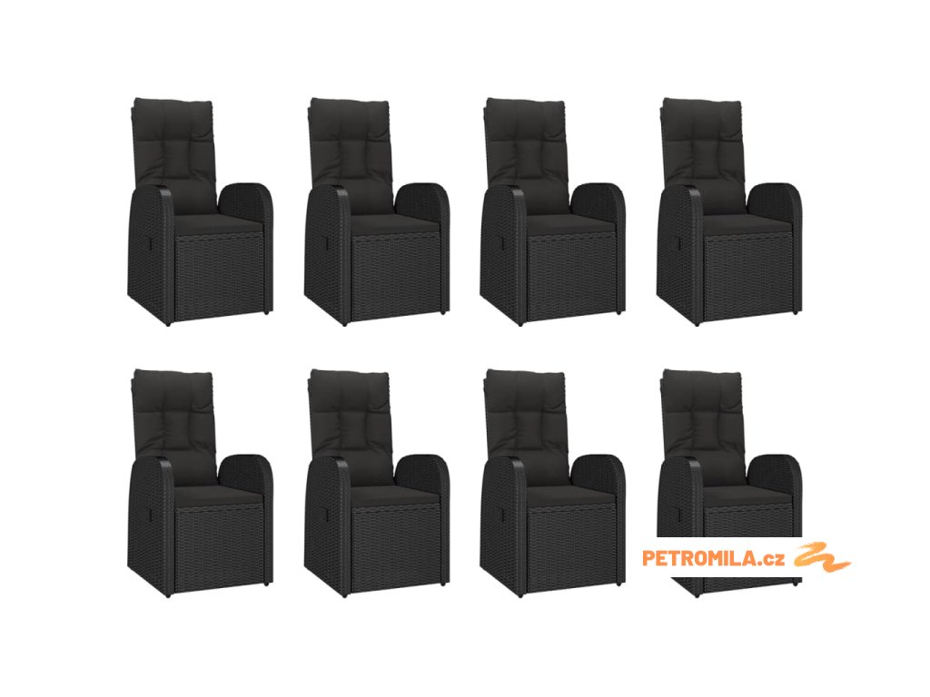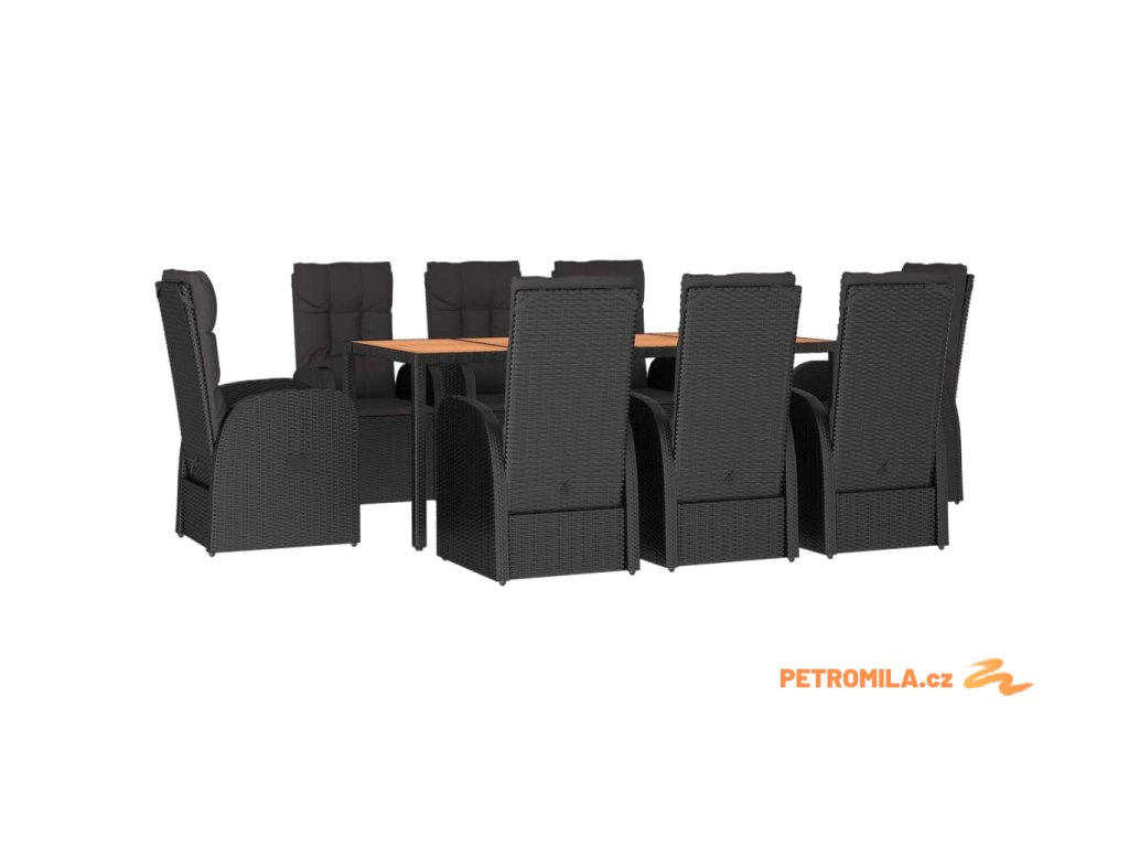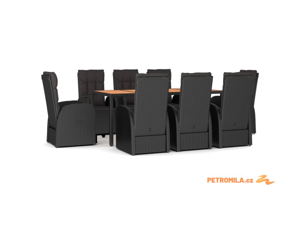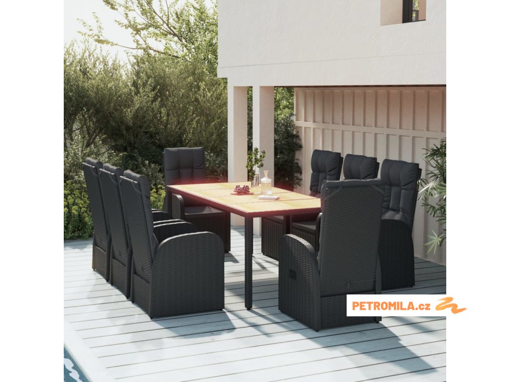 9dílný zahradní jídelní set s poduškami černý polyratan