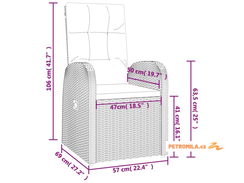 - Rozměry sklopeného křesla: 57 x 106 x 85 cm (Š x H x V)