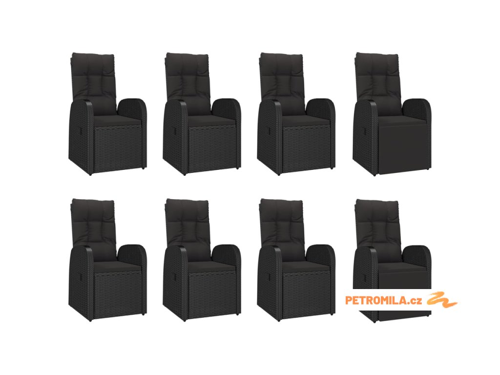 9dílný zahradní jídelní set s poduškami černý polyratan