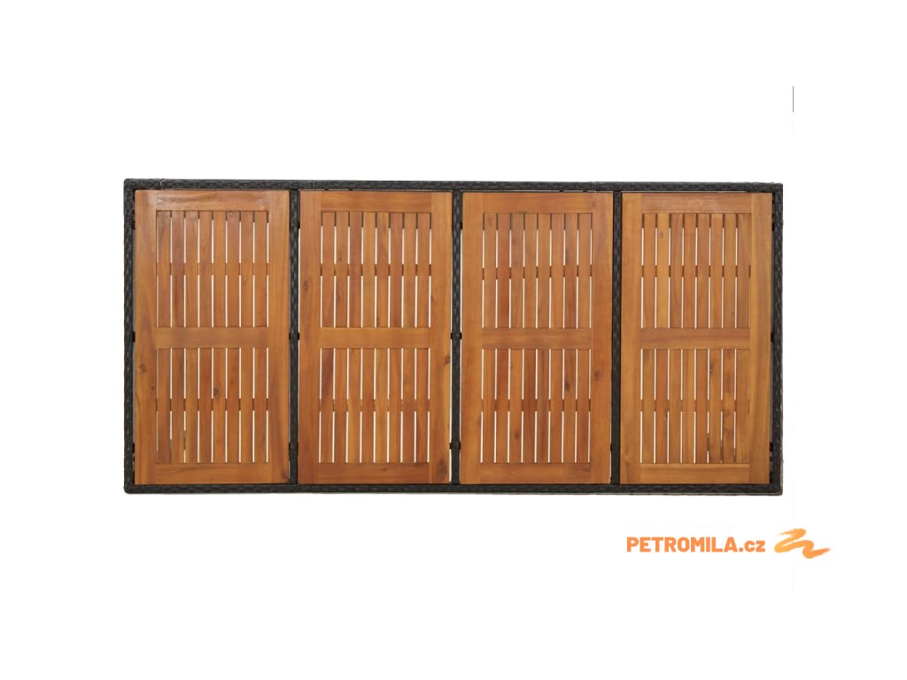 - Materiál: PE ratan, práškově lakovaná ocel, masivní akáciové dřevo s olejovou povrchovou úpravou