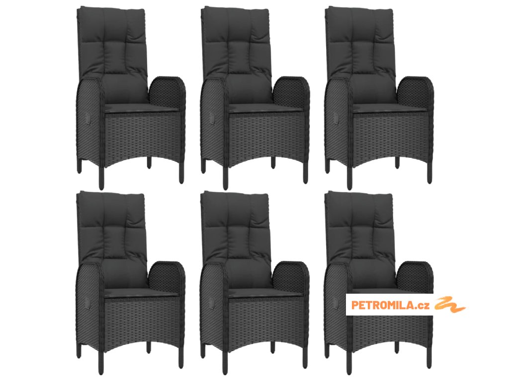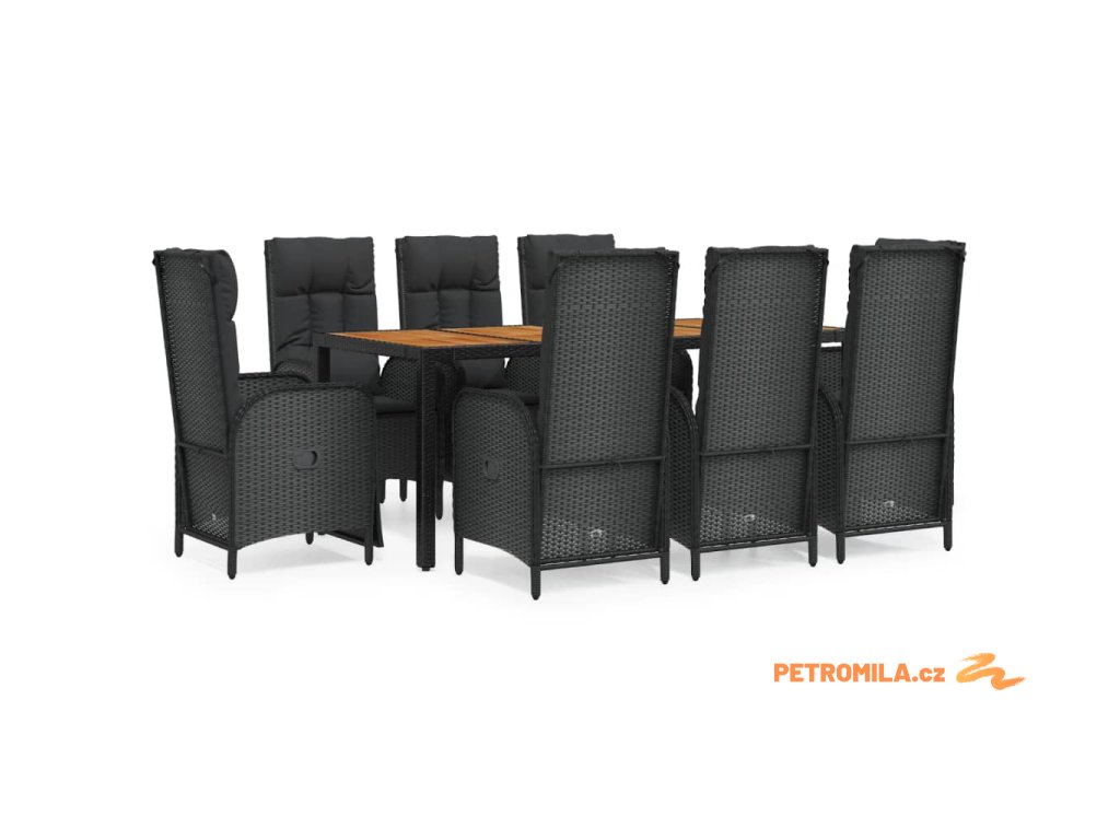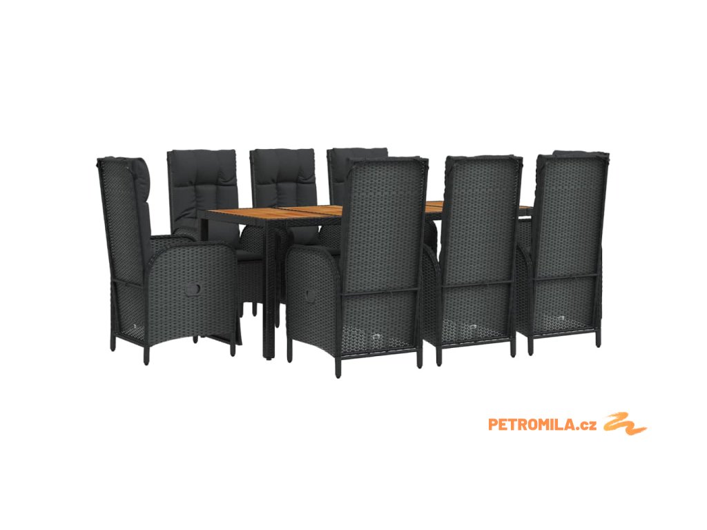 9dílný zahradní jídelní set s poduškami černý polyratan