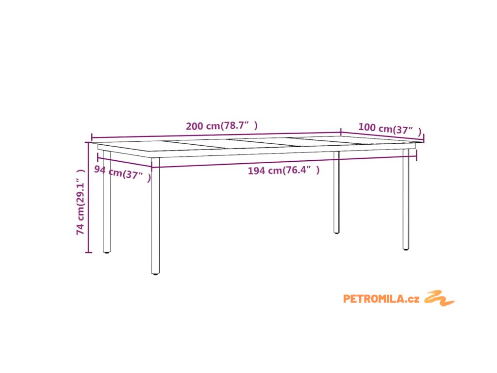 - Rozměry stolu: 200 x 100 x 74 cm (D x Š x V)