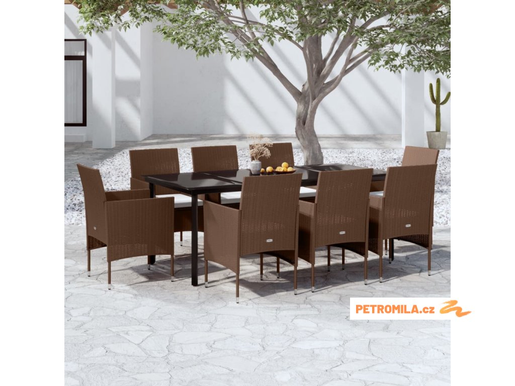 9dílný zahradní jídelní set s poduškami hnědý a černý