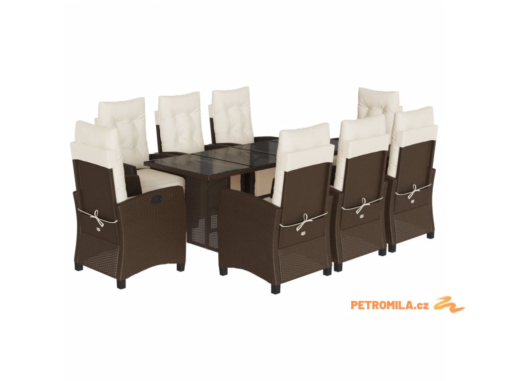 9dílný zahradní jídelní set s poduškami hnědý polyratan