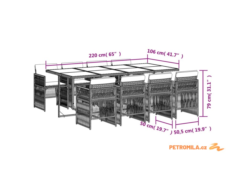 - Rozměry: 220 x 106 x 73 cm (D x Š x V)