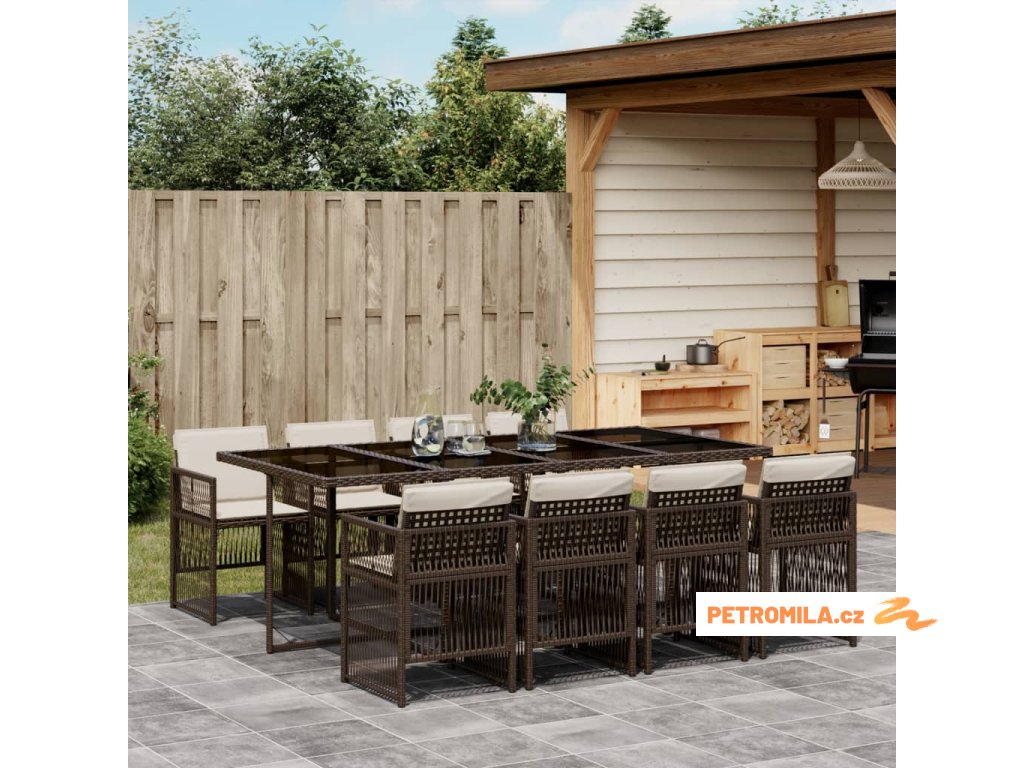 9dílný zahradní jídelní set s poduškami hnědý polyratan
