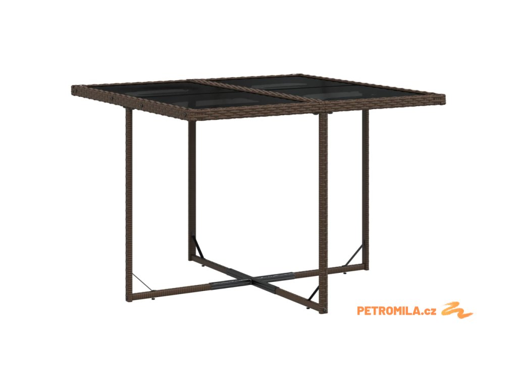 - Materiál: PE ratan, práškově lakovaná ocel, tvrzené sklo