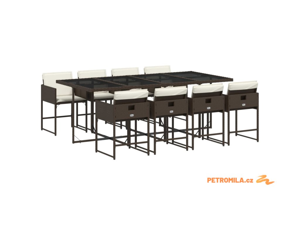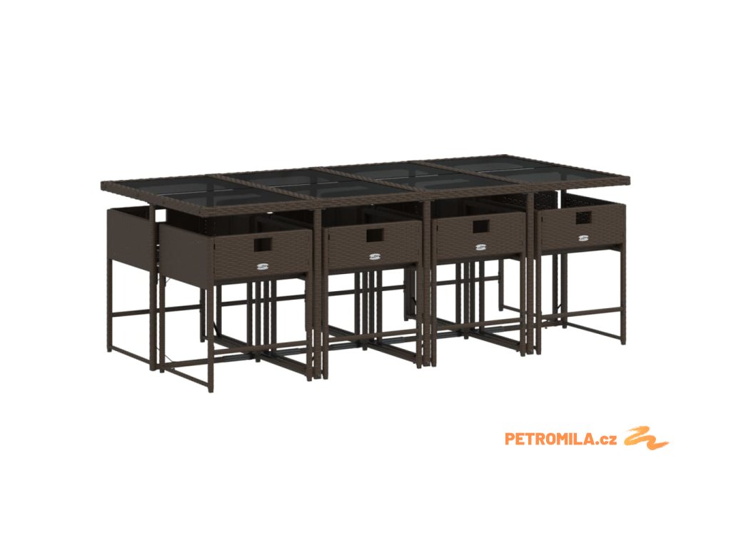 9dílný zahradní jídelní set s poduškami hnědý polyratan
