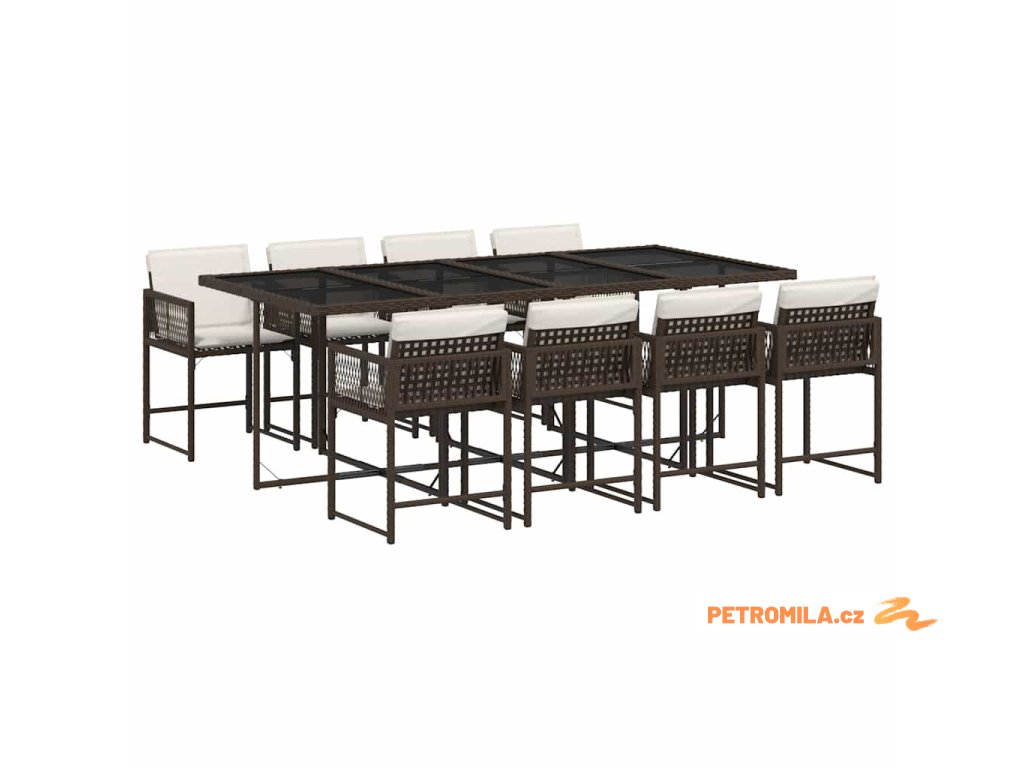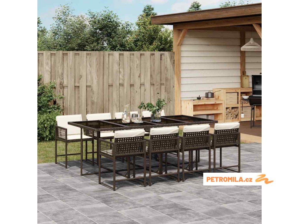 9dílný zahradní jídelní set s poduškami hnědý polyratan