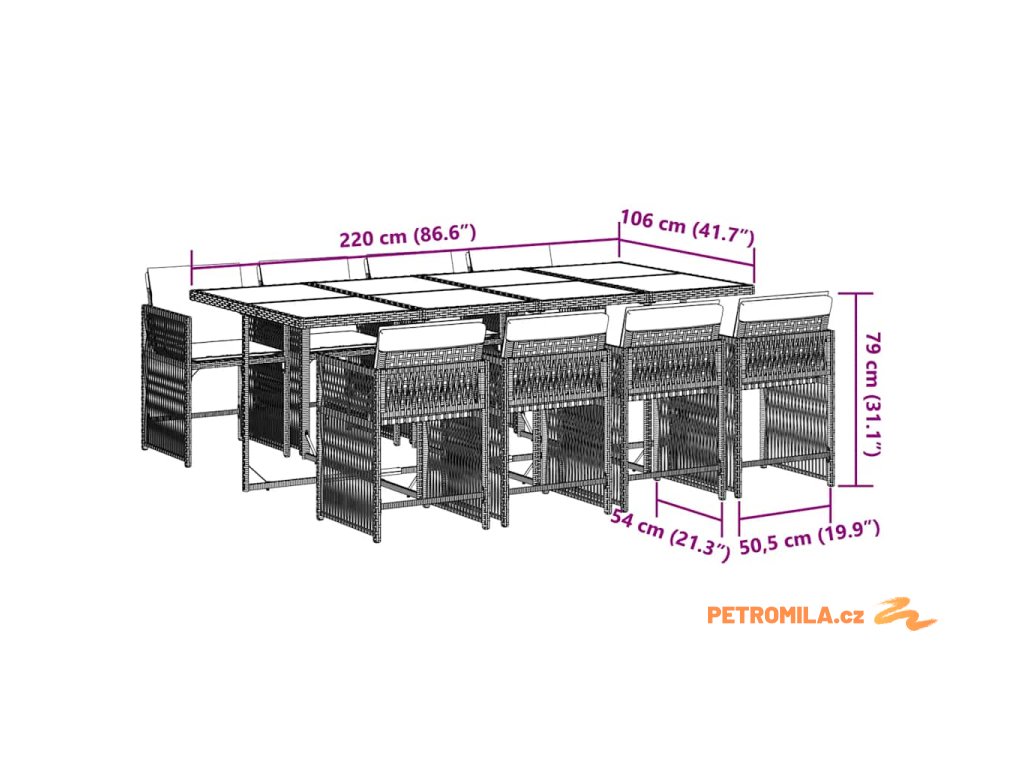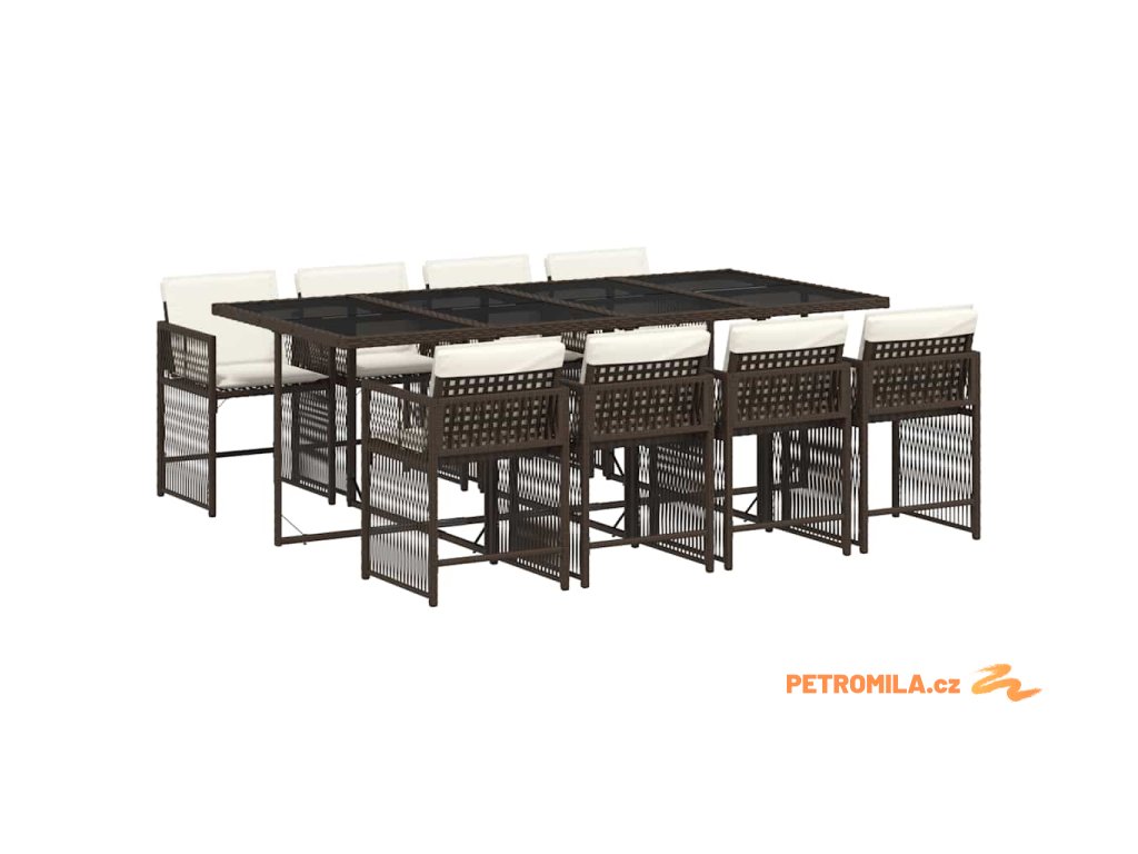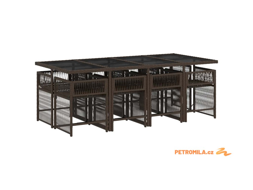 9dílný zahradní jídelní set s poduškami hnědý polyratan