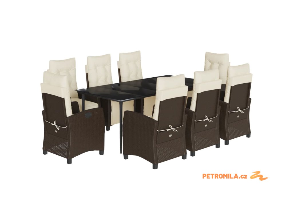 9dílný zahradní jídelní set s poduškami hnědý polyratan