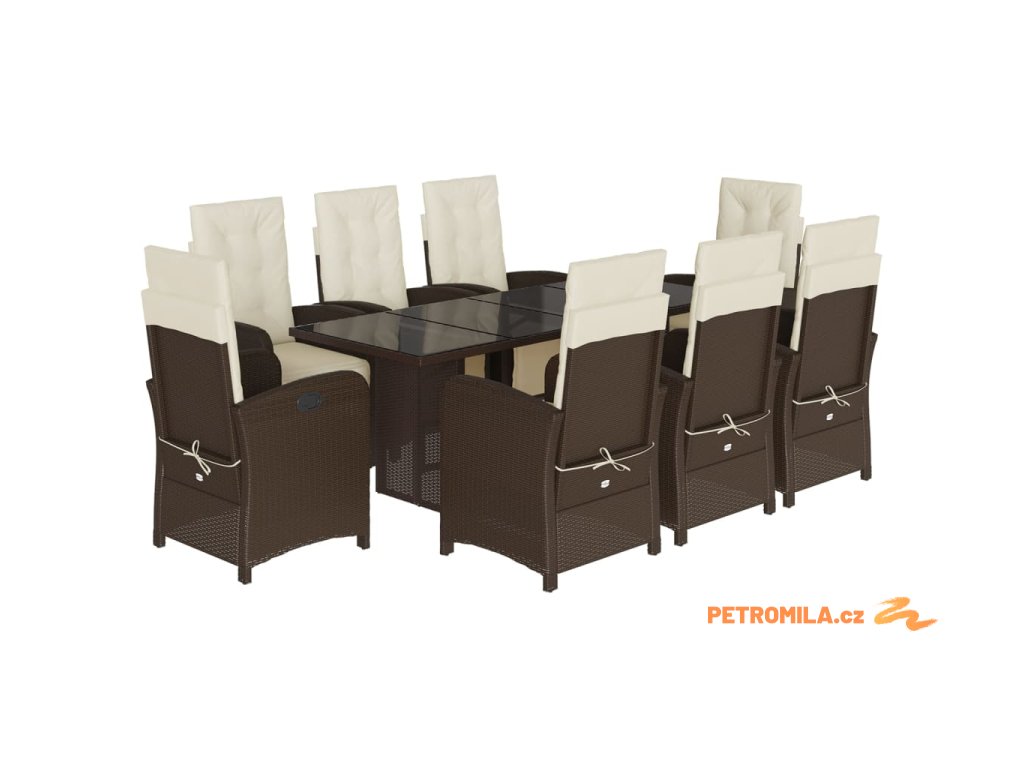 9dílný zahradní jídelní set s poduškami hnědý polyratan