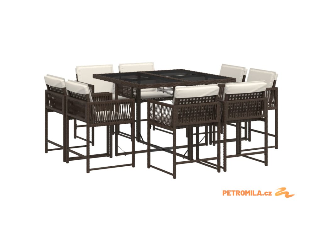 9dílný zahradní jídelní set s poduškami hnědý polyratan