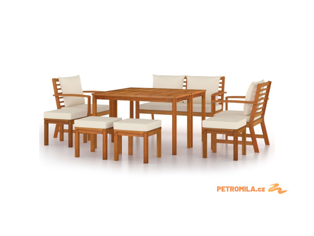 9dílný zahradní jídelní set s poduškami masivní akáciové dřevo
