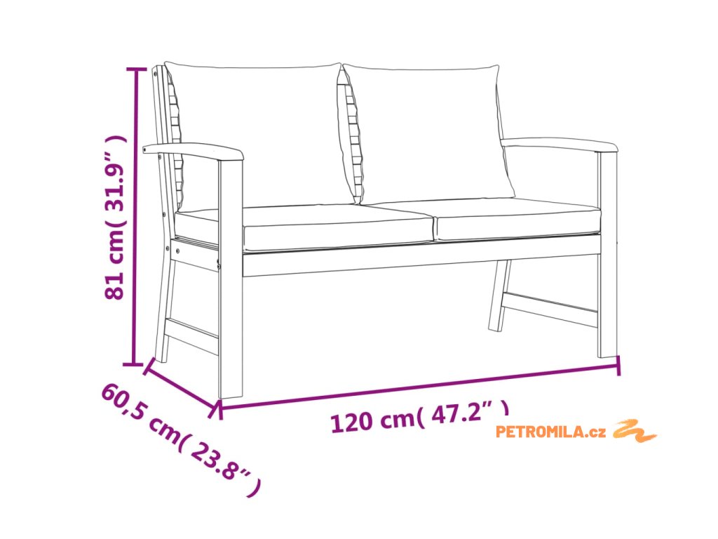 • Rozměry: 120 x 60,5 x 81 cm (Š x H x V)
