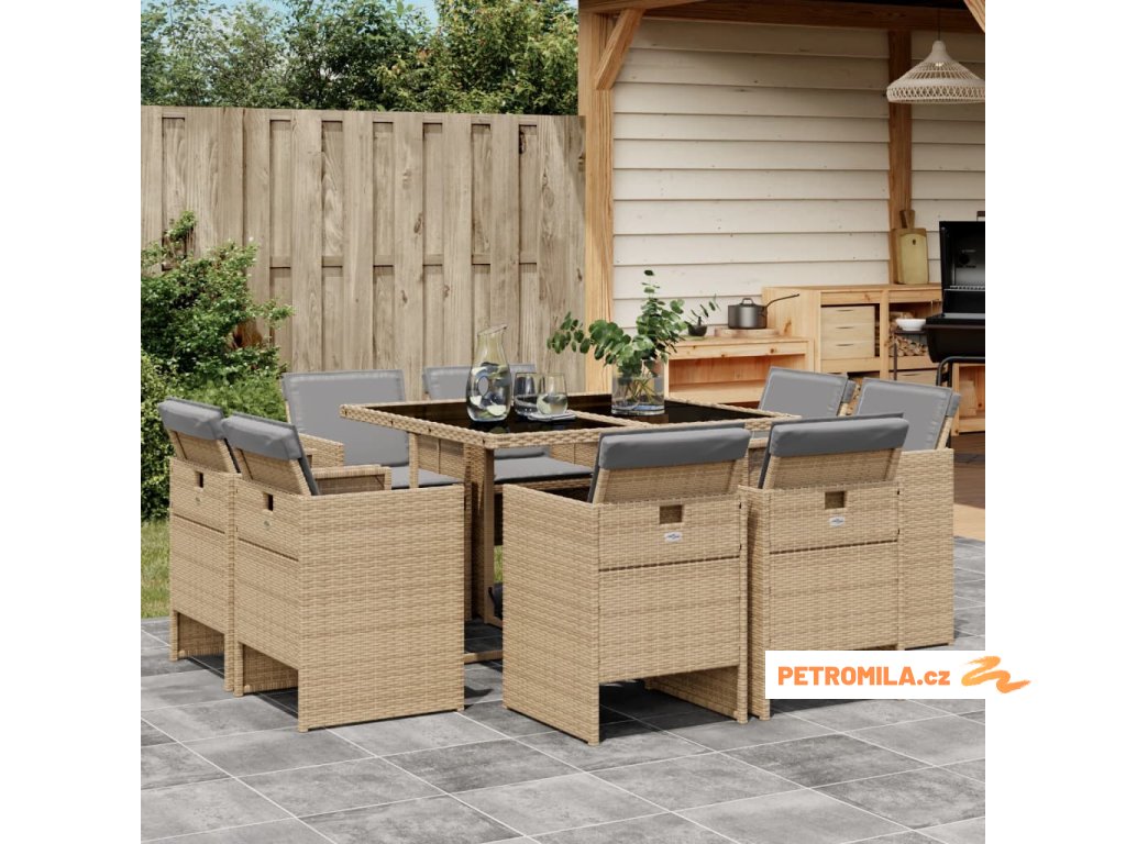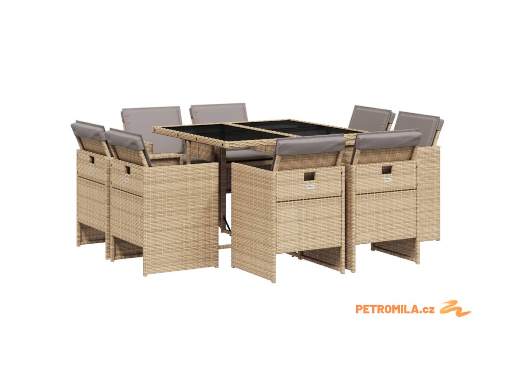 9dílný zahradní jídelní set s poduškami mix béžové polyratan