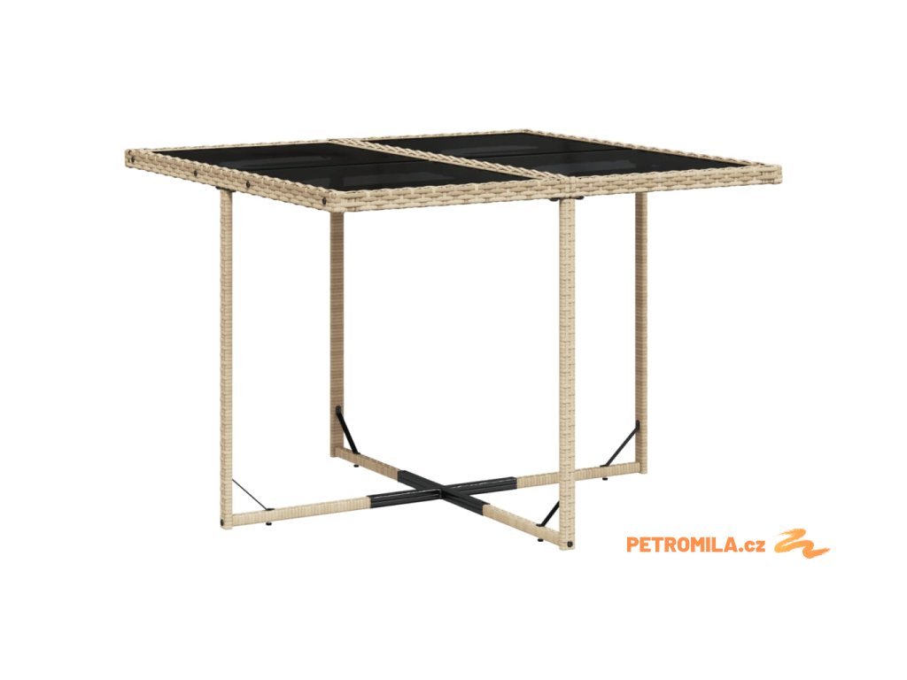 - Materiál: PE ratan, práškově lakovaná ocel, tvrzené sklo