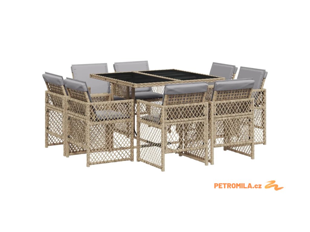 9dílný zahradní jídelní set s poduškami mix béžové polyratan