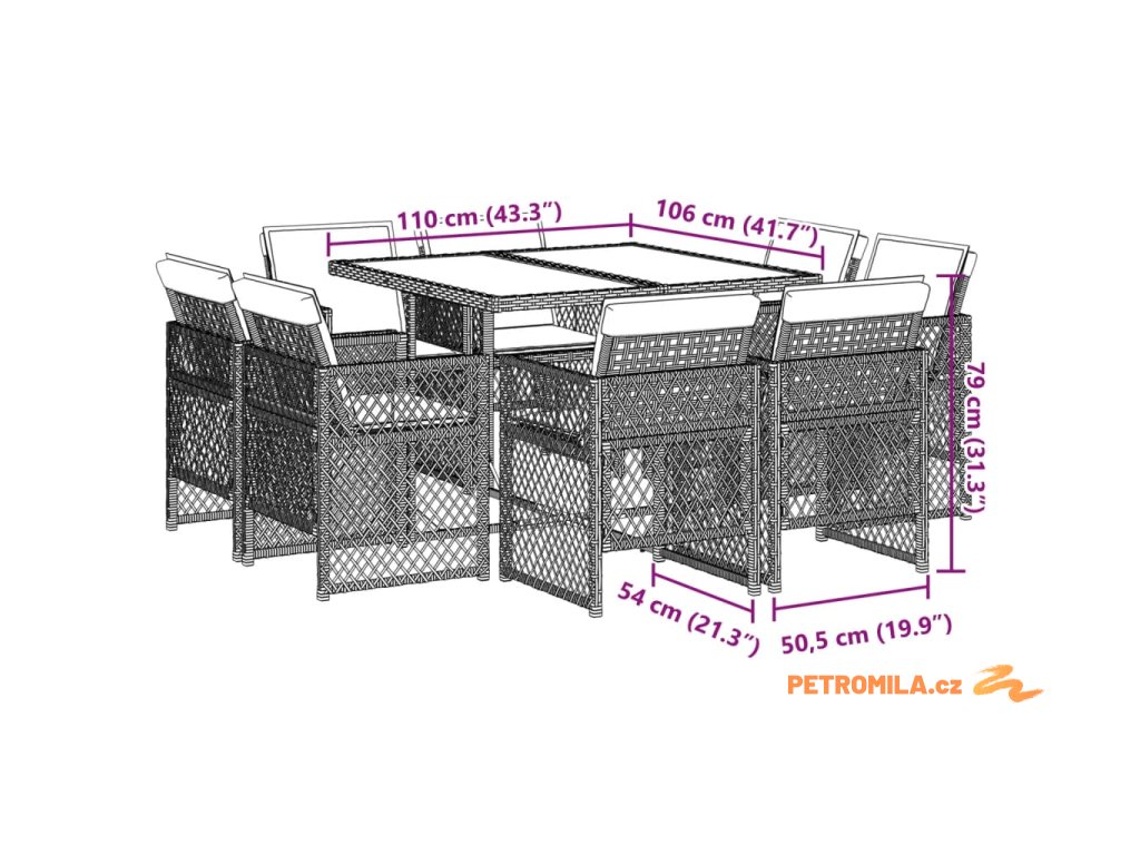 - Materiál: PE ratan, práškově lakovaná ocel, tvrzené sklo